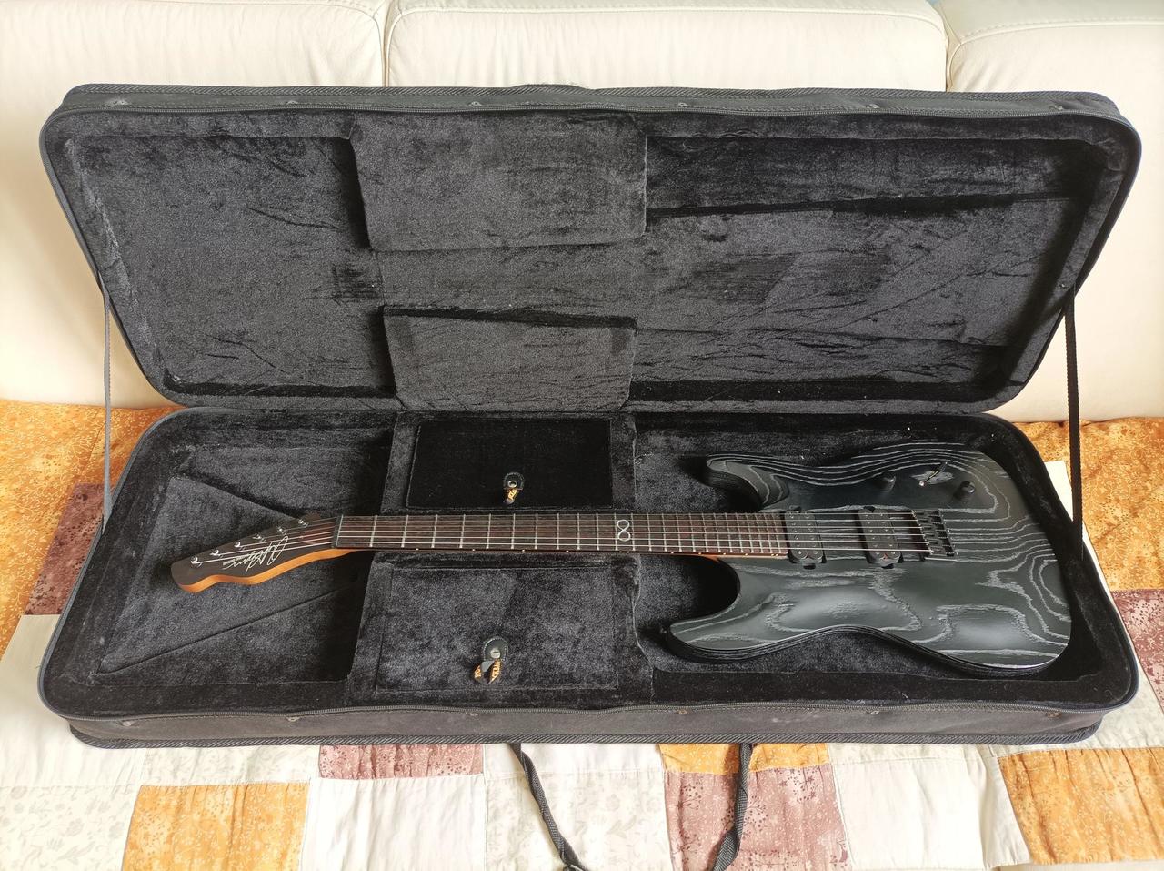 Technické parametry: Průchozí krk z pečeného javoru, tělo z jasanových křídel a masivního jasanového topu, ebenový hmatník s 24 pražci z nerezové oceli velikosti Jumbo. Snímače Seymour Duncan s Alnico V magnety, potenciometr hlasitosti, push-pull potenciometr tónové clony a třípolohový přepínač. Uzamykatelné mechaniky Hipshot Grip-Lock Open. Její příběh: Kytaru jsem pořídil jako druhý majitel především kvůli průběžnému krku a tomu, že je "jiná". Vizuálně opravdu zaujme a je úžasně rezonantní. V době pořízení byla také v nabídce Kytar.cz, kde jsem dva exempláře osobně zkoušel, ale nakonec se rozhodl pro třetí exemplář, který byl tady na bazaru. Předchozí majitel provedl zásahy do elektroniky a zároveň nakrátko poté, co se dostala ke mně, začal zlobit volume potenciometr a switch. Kytaru jsem tedy zavezl ke Standovi Papežovi a nechal udělat velký servis. Jeho výsledkem je komplet repasovaná elektronika - vyměněny oba potenciometry (push-pull tónová clona rozepíná humbuckery) a na Standovo doporučení instalován nový 3 polohový switch. Dále proběhlo seřízení krku/dohmatu/kobylky pro struny 009-042. Nyní je ve skvělé formě a odpovídá své původní cenovce na prodejnách (ta se pohybovala kolem 35.000,- Kč). Přes všechny výše popsané superlativy ji prodávám, protože jsem založením stratocastrista a tento nástroj se stal nakonec jen součástí mojí sbírky, což je škoda. Nebráním se případné výměně. K vyzkoušení a osobnímu odběru v Brně. Po dohodě ji mohu do 30 km od Brna přivézt za vámi. Softcase ROCKCASE na fotografiích je součástí.