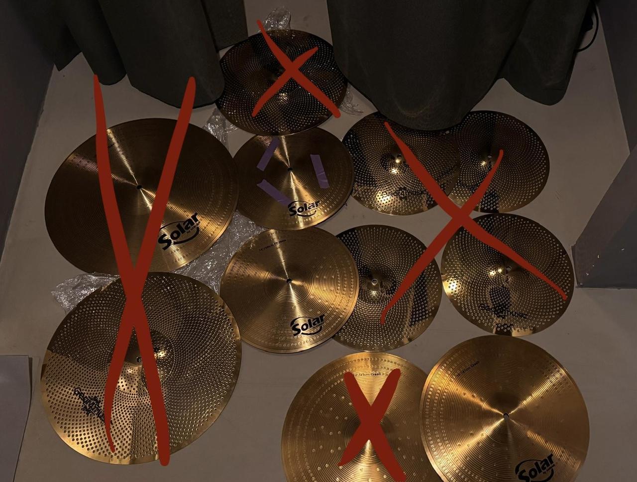 Smíchov. Orientační cena: 2 činely za 1000-1200 korun. Na fotkách je vidět co se zůstalo.