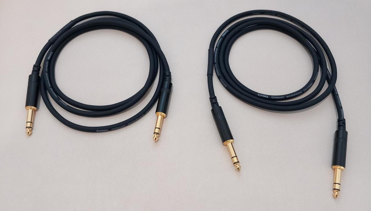 Prodám dva kusy symetrických kabelů Cordial CFM s konektory Neutrik Rean. 6,3mm vyvážený samec -> 6,3mm vyvážený samec. Délka: 1,5 m. Cena za oba kusy.