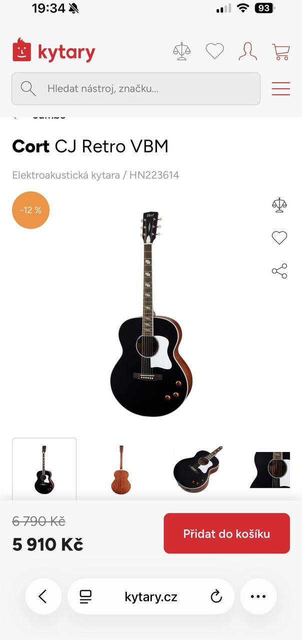 Prodám akustickou kytaru Cort CJ Retro VBM