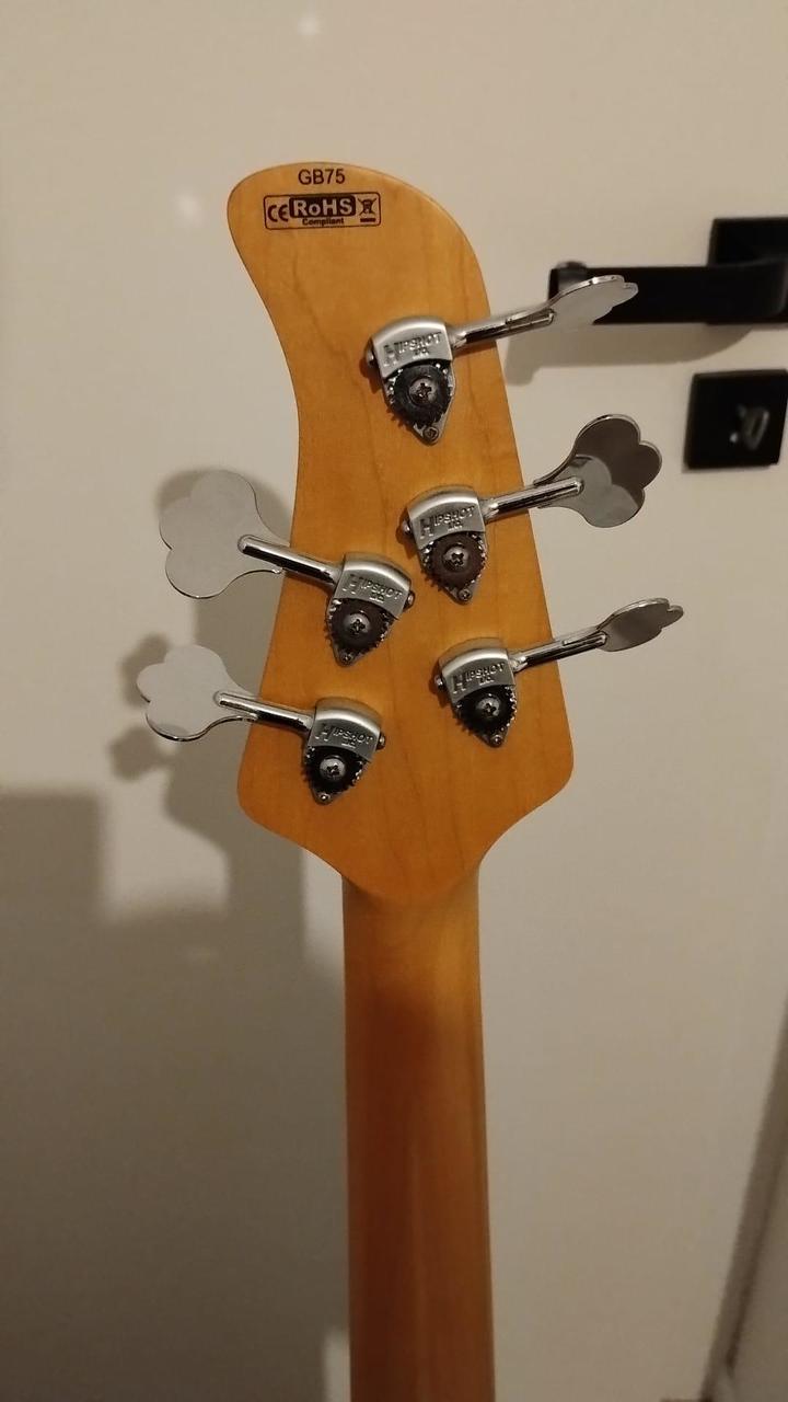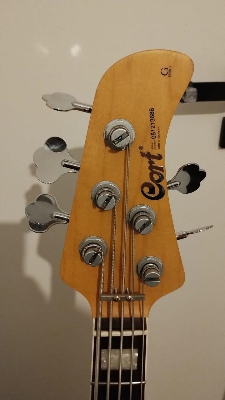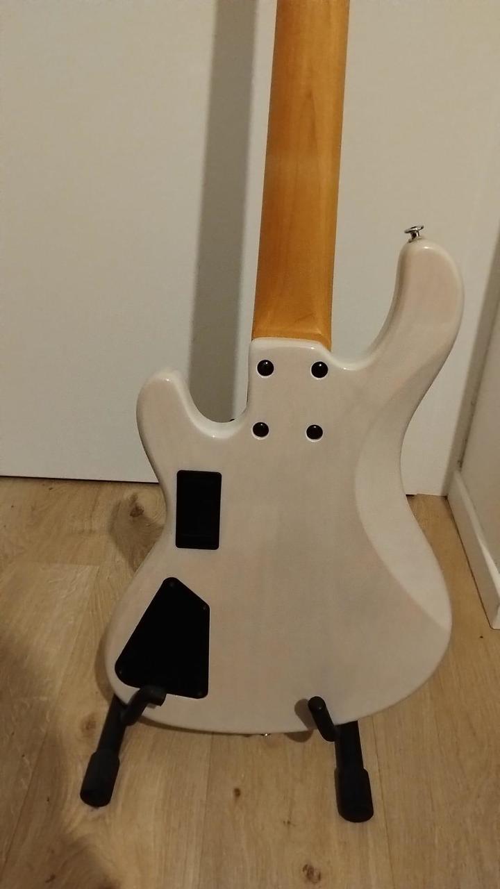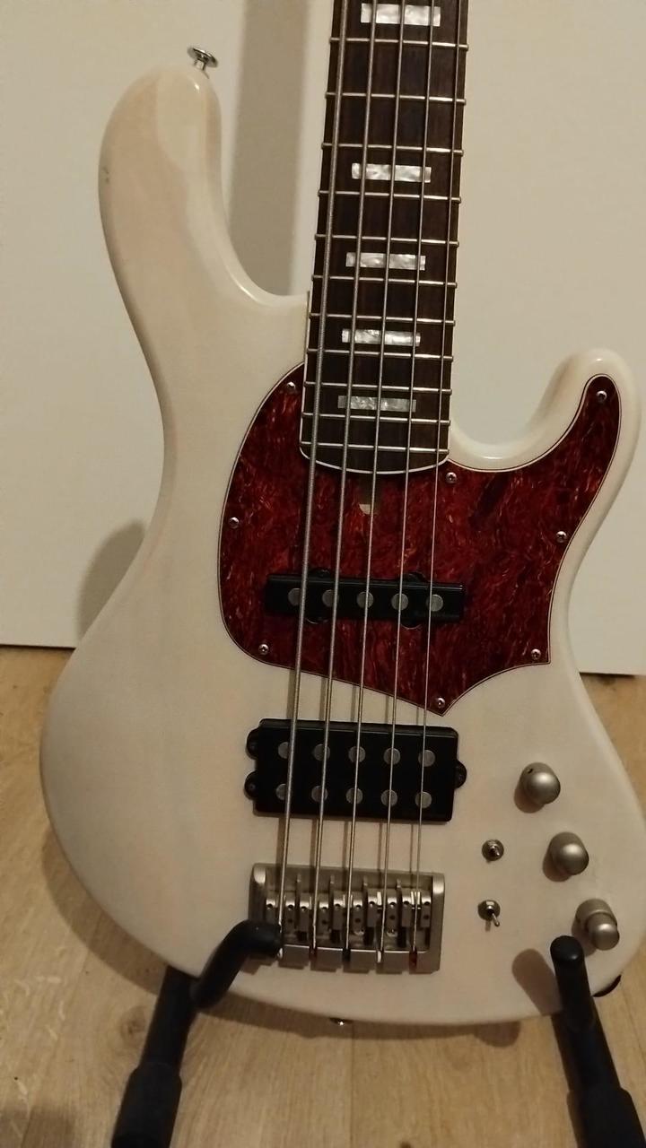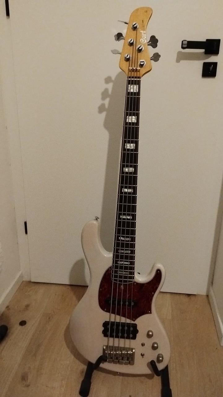 Predám 5 strunovú basu Cort GB75, čiastočne transparentná farba (pod farbou presvitá kresba dreva), snímače upgradované na RM Pickups JMM set ->samarium kobaltové magnety. Active/Passive prepínač na volube knobe + rozpínanie kobylkového snímača prepínačom, mid shift prepínač. Basa bola odborne nastavená, veľmi pohodlne hrateľná, nízky dohmat, dobrý zvuk. Mám príliš veľa bás tak výmena skôr nie.
