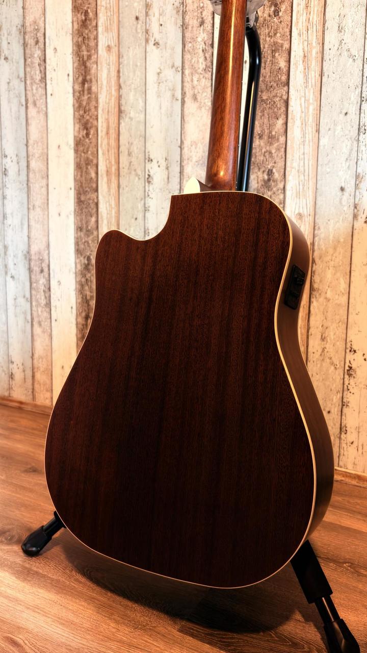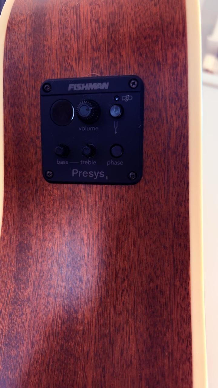 Přední deska je zhotovena z masivního smrku, zadní deska a luby z mahagonu. Mahagonový krk, hmatník z ovangkolu osazený dvaceti pražci. O ozvučení nástroje se stará podkobylkový piezo snímač Fishman Sonicore a aktivní elektronika Fishman Presys II s dvoupásmovým ekvalizérem, ovladačem hlasitosti, funkcí Phase a integrovanou ladičkou. Kytaru je možné prodat i s obalem, preferuji osobní odzkoušení a prohlédnutí.