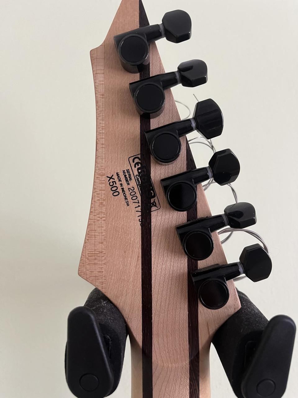 prodám tuto elektrickou kytaru značky Cort. Tuto kytaru jsem koupil před 2 roky zde na bazaru, jsem druhý majitel. Tělo je z bahenního jasanu, krk je průchozí z javoru a dřeva panga-panga, hmatník z ebenu. Kytara má 24 pražců, snímače EMG 81 a 60 a tremolo Floyd Rose Special s novými sedly značky Schaller. Díky tomuto vylepšení se stabilita ladění dá srovnat s originálním Floyd Rose. Kytara je skvělá, avšak s novou kapelou potřebuji často měnit ladění, což u tohoto systému tremola nelze, proto bych ji rád poslal dál. Prodám buďto za 11000 Kč, nebo vyměním za kytaru podobných specifikací a v podobné cenové hladině, avšak s pevnou kobylkou - ESP LTD, Jackson, Solar, Ibanez, Schecter, ale i PRS. Nebráním se doplatku ani z jedné strany. Kontaktujte mě prosím zde přes Hudební Bazar nebo přes telefon, ale bohužel mezi 8-15 hodinou nemůžu. Děkuji