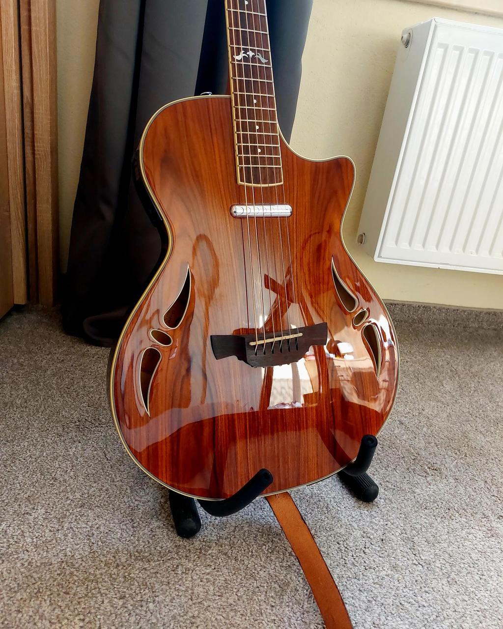 Ojedinělý kus v ČR, vhodná pro bluesrock, countryrock, jazzrock. Perfektní ušlechtilý zvuk, ideální pro sběratele. Prodám včetně ručně vyřezávaného popruhu a pevného originálního pouzdra na míru.