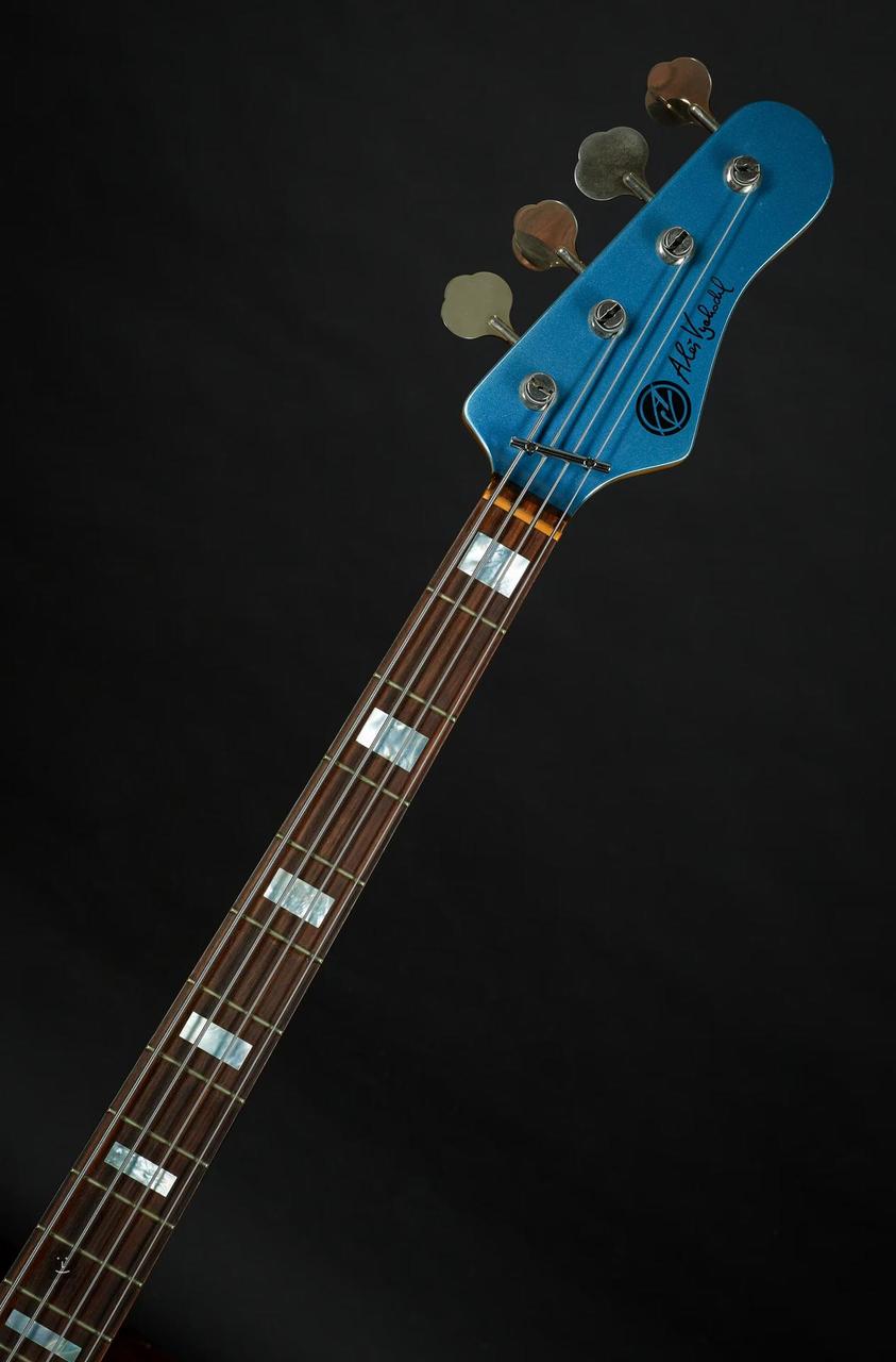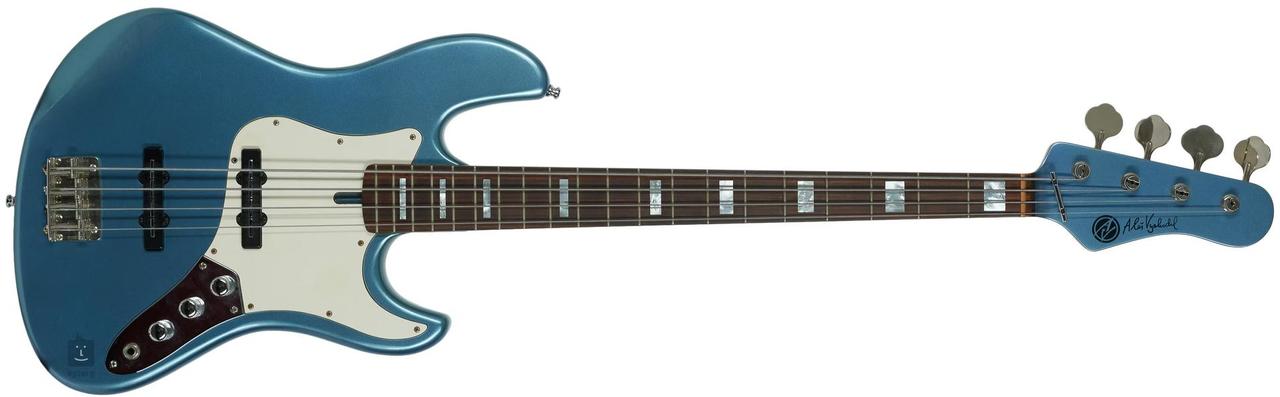 Vychodila, stav nového nástroje, nově struny, seřízeno u p.Papeže s měkkým futrálem. Skvělý tón, příjemný krk, vyvážená. Pasivní elektronika se standardním zapojením a snímači Nordstrand Big J Blade Clear+Clear, olšové tělo,krk javor, hmatník palisandr s perleťovými bloky, tělo a matching headstock v barvě Steel Blue ( kyselinotvrdnoucí lak). Hardware GOTOH Gb1 a Gotoh 203B-4.
