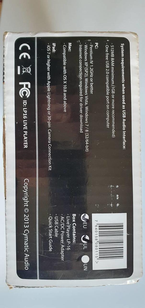 Možnost vyzkoušení a vyzvednutí ve Velkém Oseku u Kolína. Volat můžete na 723 071 041. https://cymaticaudio.com/product/lp-16-live-player-16-track-backing-track-system/
