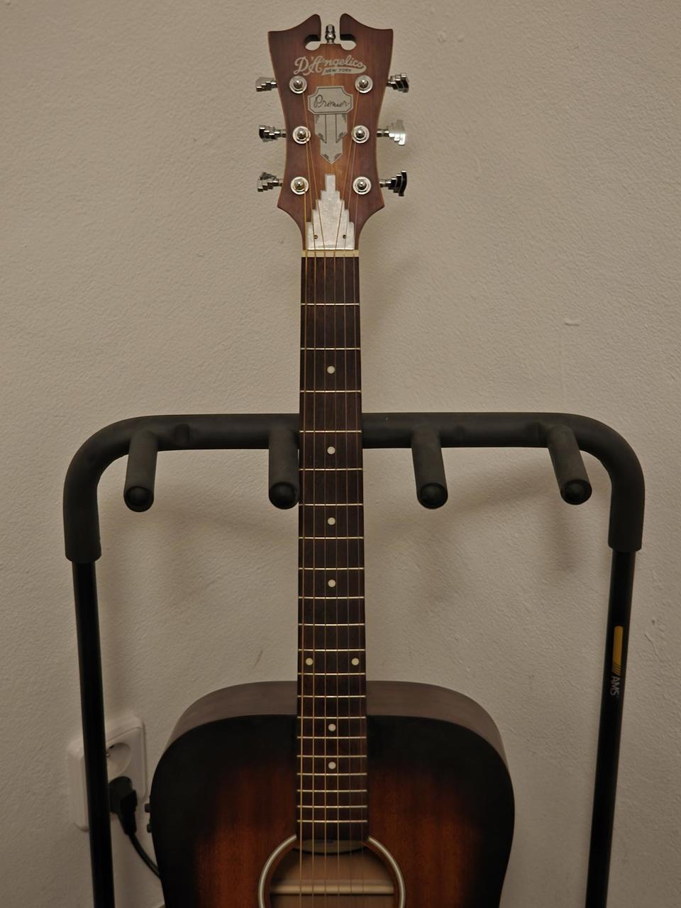 D'Angelico Premier Tammany LS. Pristine condition. Mahogany OM body with a built-in tuner. Owned for 4 years, home use only.