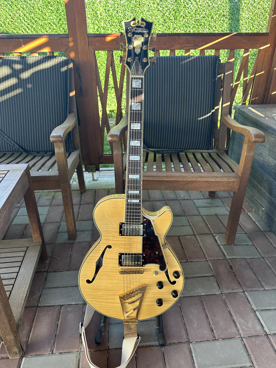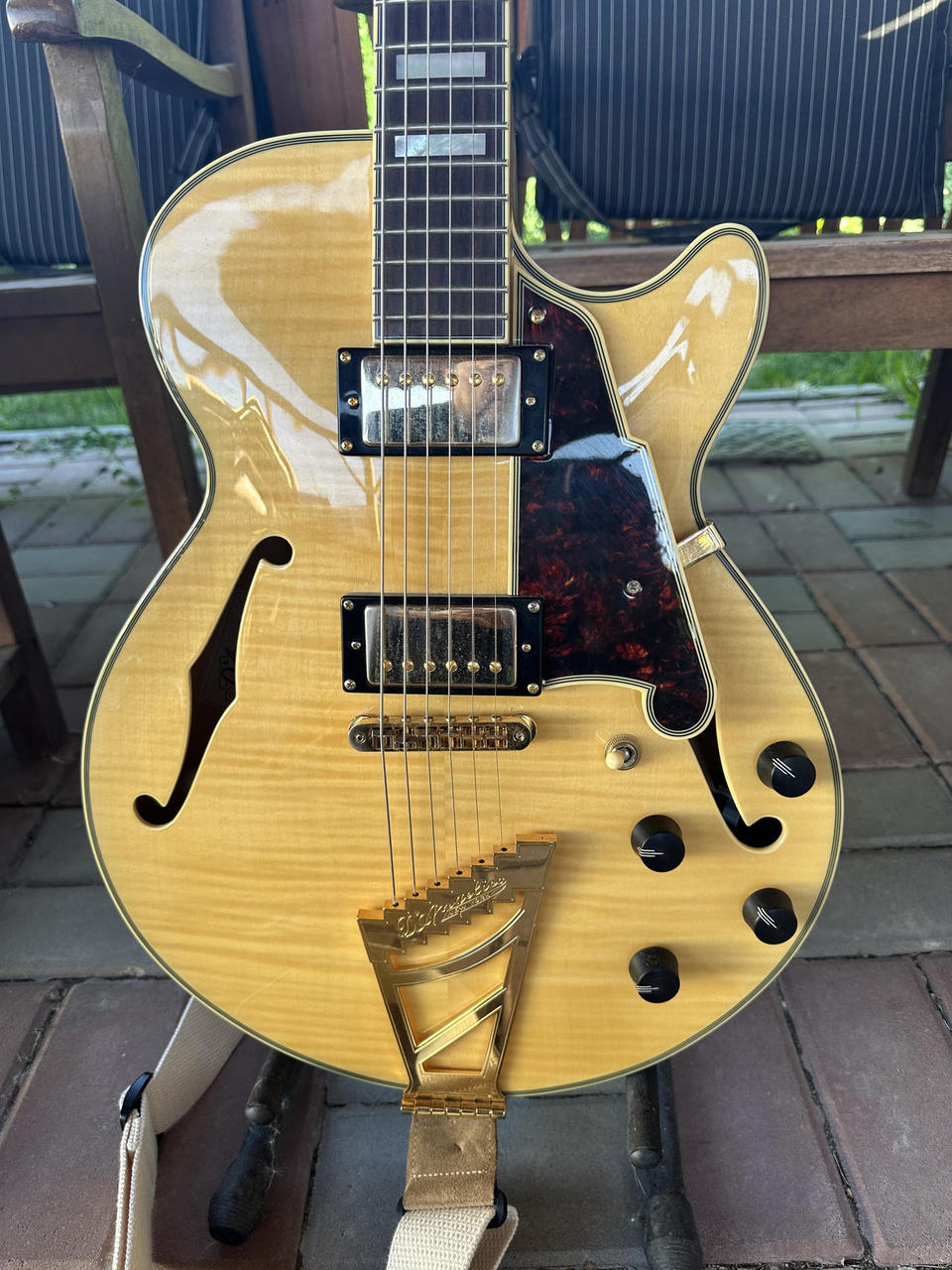 Predám krásnu lubovku s menším telom, odolným proti spätnej väzbe. Oproti dnešnej výrobe má snímače Kent Armstrong, ebenový hmatník, zamykacie mechaniky a úplne duté telo ako skutočné archtopy. Zvukovo lahôdka, s pôvodným kvalitným tvrdým kufrom.