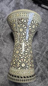 Prodám egyptskou darbuku, vykládanou perletí. Včetně náhradní blány.