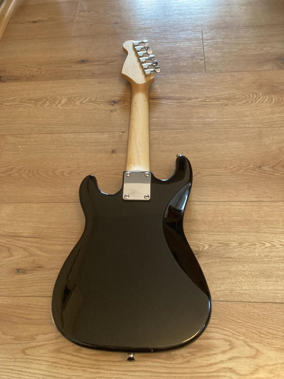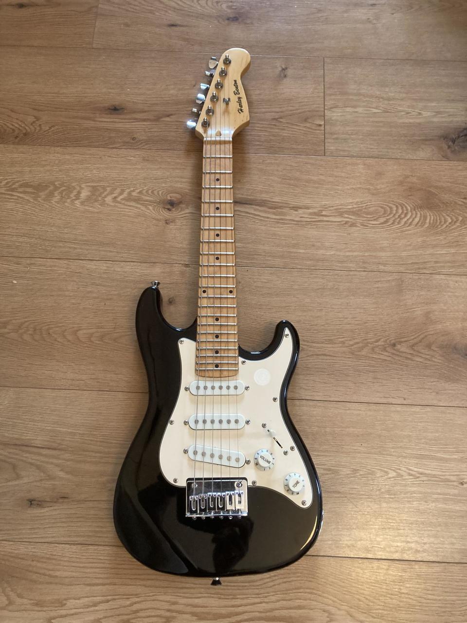 Prodám funkční dětskou kytaru Harley Benton Stratocaster. Menzura 492 mm, ladění ADGCEa. Součástí nabídky je i měkký obal. Syn této velikosti už odrostl.