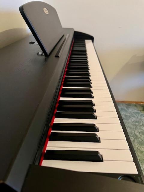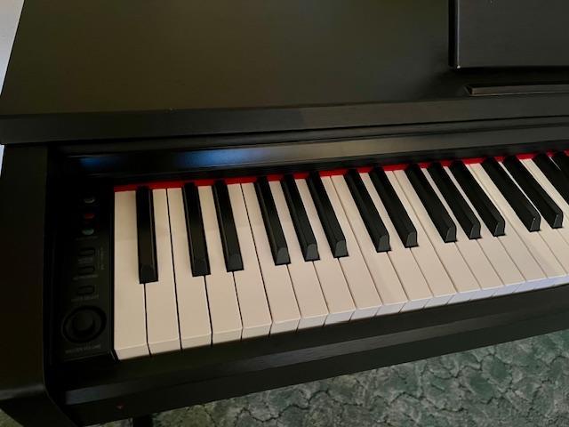 Prodám zachovalé, plně funkční piano Suzuki HP-3. Klaviatura: 88 kláves kladívková mechanika Polyfonie: 81 hlasá Pedály: Soft, Sostenuto, Sustain Zvuky: 32, 128 GM zvuků Doprovody: 30 rytmů Dual zvuky: ano Twin: ano Ladění: 415,3 - 466,2 Hz Úhoz: Light, Normal, Heavy a Fixed Transpozice: od -6 do +5 kroků Skladby pro cvičení: 16 skladeb Digitální reverb: +- 5 úrovní Brightness: +- 5 úrovní Metronom: rozsah 20 až 250 bpm Takt: 1/4, 2/4, 3/4, 4/4, 5/4, 6/4 Vestavěný záznamník: 1 skladba, 1 stopa Reproduktory: 2 x 10 cm celo pásmové Výkon: 2 x 10 W Sluchátkový výstup: 2x Bluetooth: MIDI In/Out Audio Out: Ano (L + R) USB: USB TO HOST Reproduktory: 2x 10 cm Zesilovač: 2x 15W Napájení: 16V / 2,6 A Povrchová úprava: WH - bílý mat Rozměry: 1366 x 418 x 797 mm Hmotnost: 37 kg