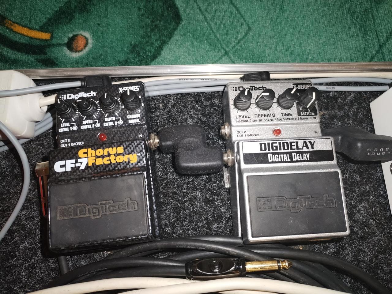 prodám Digitech CF7 a Digitech DD, které byli vždy uloženy v pedalboardu - viz foto. Za každý jeden efekt cena 2450Kč. Nemám zájem o výměnu. Ideálně osobní předání v Blansku/Brně - po dohodě je možné poslat poštou + poštovné. Děkuji.