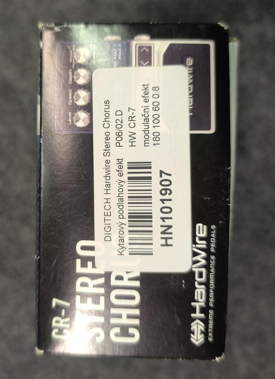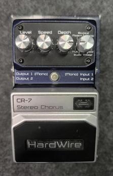 HardWire pedály změní zvuk vaší kytary, jen když budete chtít. Díky True Bypass systému přidají vaší hře na síle a ani kapku neuberou, když budou vypnuté. A když náhodou zapomenete před vystoupením vyměnit v pedálu baterii, nemusíte mít strach - při přepnutí do Bypass systému můžete klidně pokračovat ve hře! Nový CR-7 Stereo Chorus má sedm jedinečných módů - Studio, Multi, Modern, Boutique, Analog, Jazz a Vintage, díky kterým můžete dát svému zvuku rozměry od krásného teplého analogového až po moderní Digitech Multi-chorus. Jako všechny pedály této řady je vyroben z kovových komponentů zajišťujících vysokou životnost.