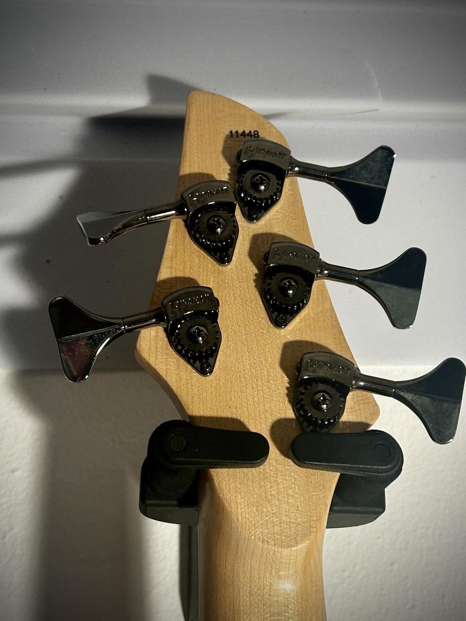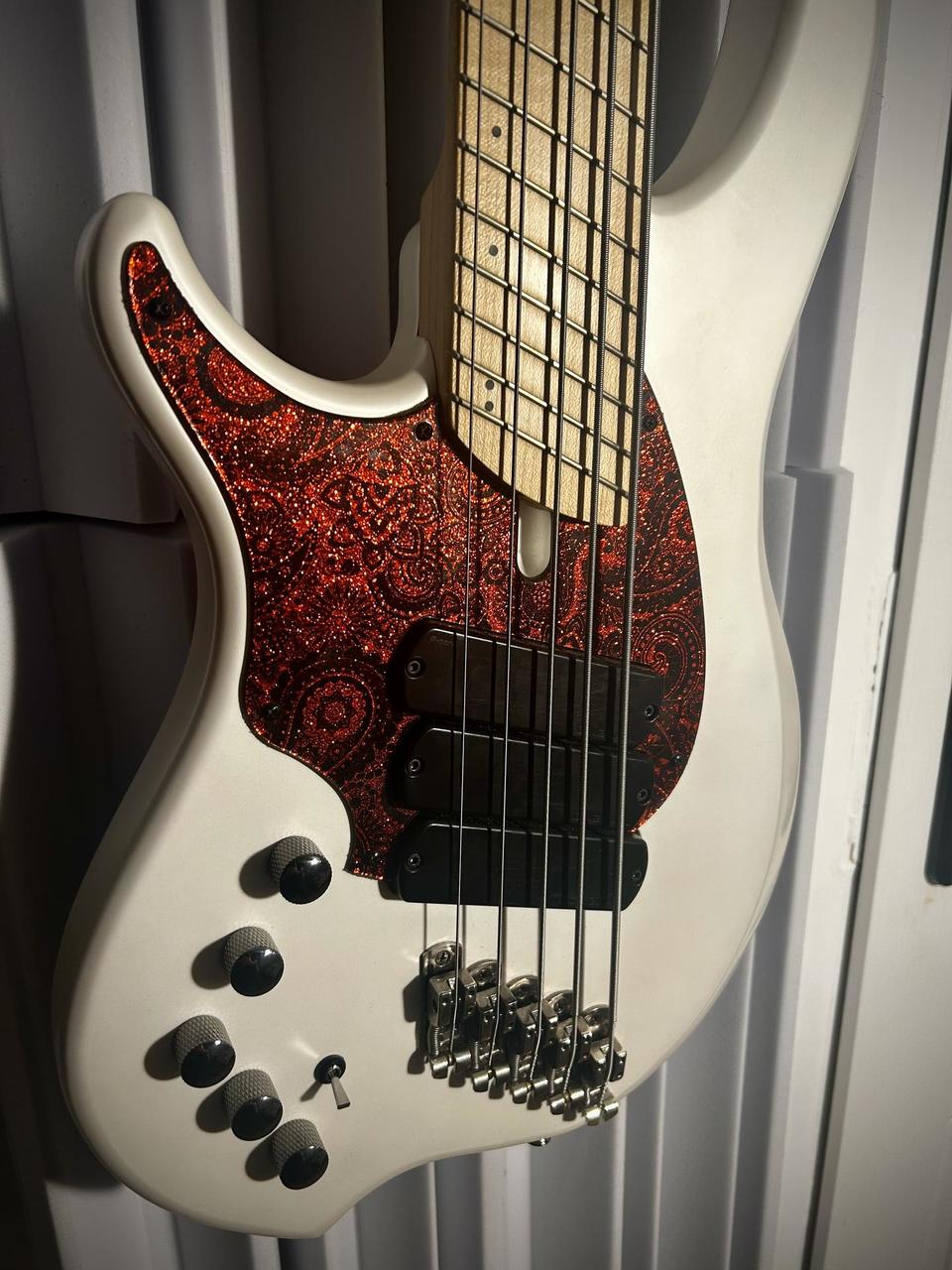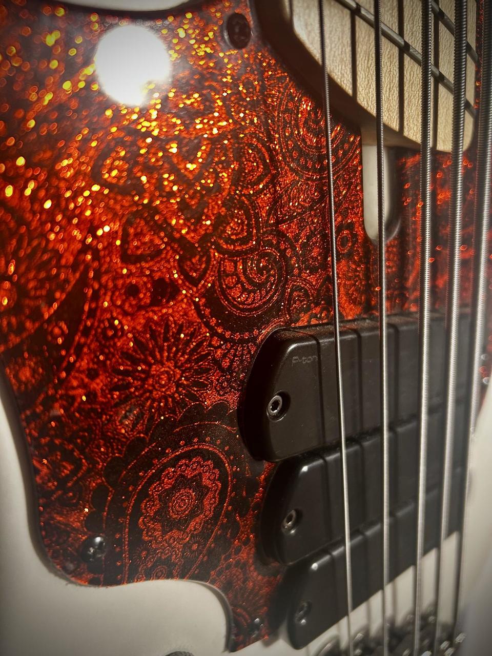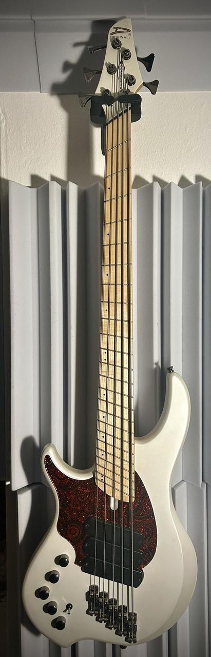 5-strunová ľavoruká Dingwall NG-2 Combustion, alder/maple, hmotnosť 4,2 kg Darkglass Tone Capsule aktívny preamp pridaný Dingwall P-Tone snímač + custom 6-polohový rotačný prepínač custom NG-3 lefty pickguard Red Sparkle Paisley (originál NG-2 pickguard súčasťou) modifikácia Nectite Black Bolt-On skrutky a inserty pre vyšší sustain a stabilitu perfektná intonácia, výborný stav, „killer“ B struna