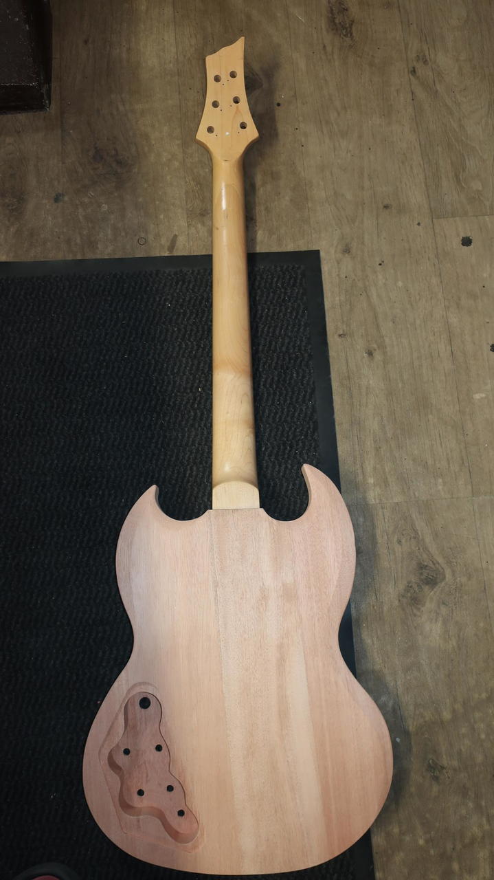 nabízím z důvodu nedostatku času tento nádherný polotovar mahagon. 2 humbuckery. Jedná se o poslední těla co mi zbyla. Přidávám i krk ale je potřeba si to dopasovat umět trochu se dřevem. Možno poslat nebo osobně cena 1500kč