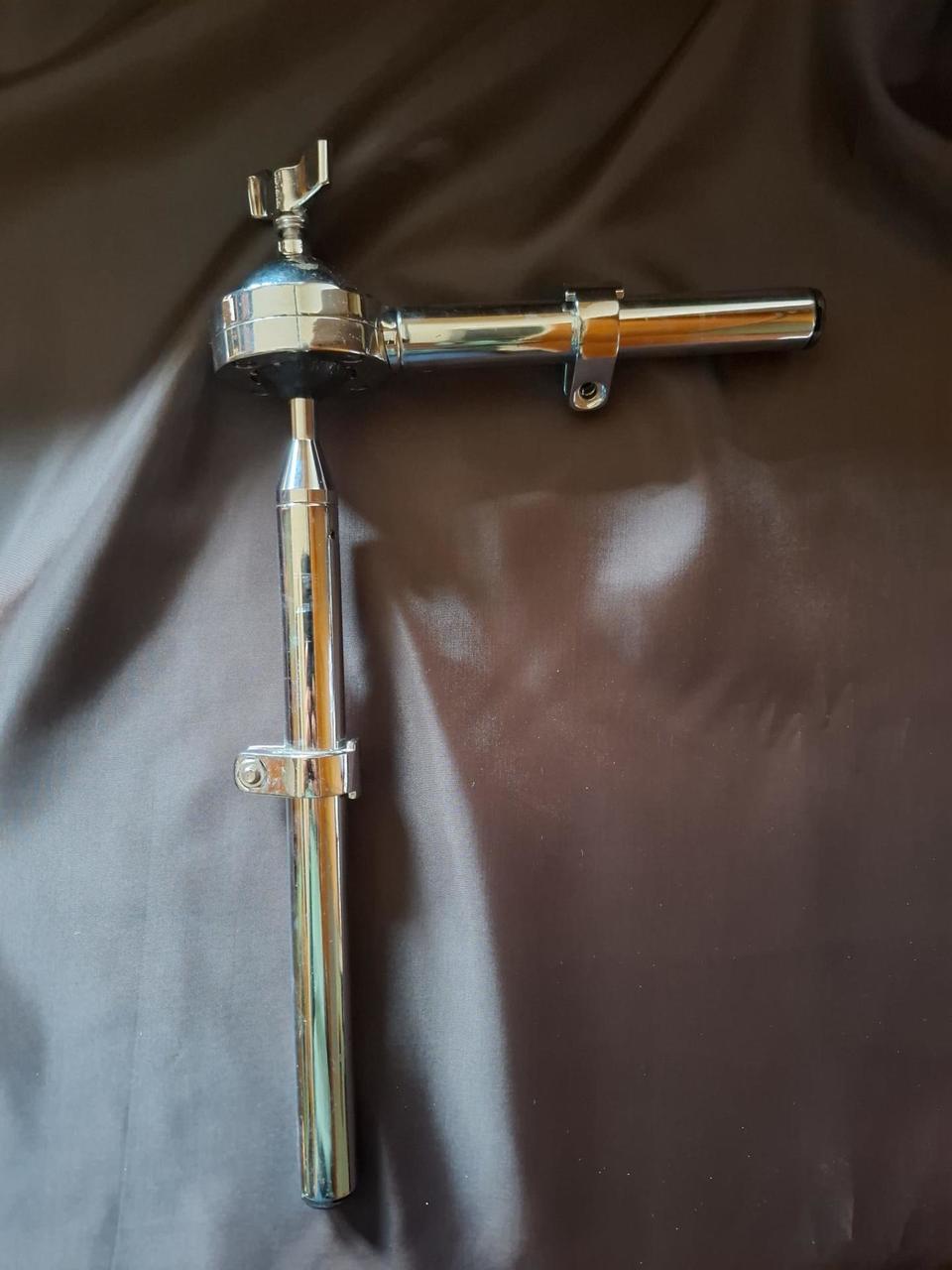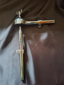 Držák tomu od firmy Gibraltar. Je vyrobený z kvalitní pochromované oceli. Průměr trubky 7/8" (22 mm). Dolní tyč je dlouhá 10" (254 mm). Díky kulovému kloubu lze tom nastavit naprosto přesně podle potřeby bubeníka.