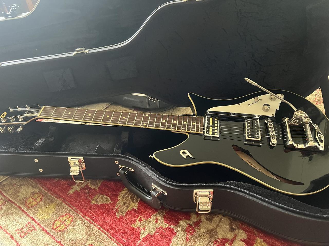 Precizní zpracování po všech stránkách. Duesenberg vyrábí vlastní famózní tremolo a mechaniky. Krkový snímač vyměněn za Lollar Goldfoil - kytaru ještě o kousek posunul (původní snímač ke kytaře není). Minimální známky používání, technicky 100% stav. Včetně orig. pevného kufru a ‘case candy’. Prodávám z důvodu nevyužití, vystačím si s LP a teletem. Vyzkoušení je možné v Praze 6.