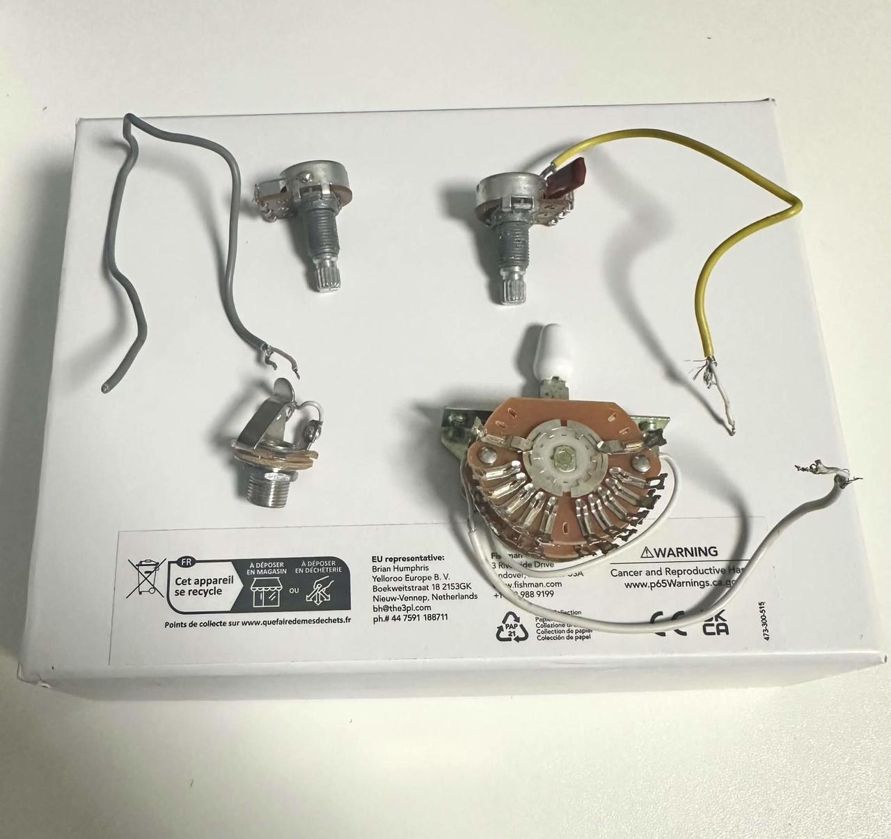Vyjmuté z Washburn Parallaxe Solar (Ola Englund signature) V perfektním stavu Snímače lze rozepnout na single coil Krkový snímač - 7,7 kΩ, Alnico V Kobylový snímač - 14,2 kΩ, Alnico V Součástí kompletní pasivní elektronika: potenciometry, input jack, 5 polohový switch, kabely V balení pružinky a šroubky pro montování do ráměčků, součástí taky gumy s odpružením pro direct mount. Odběr v Praze, případně mohu zaslat.