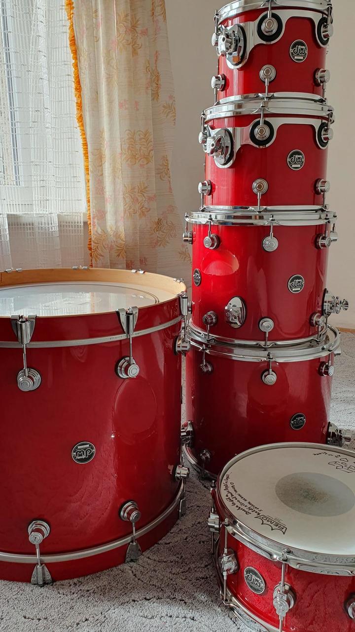 Prodám soupravu DW Performance series - 22BD,10TT,12TT,16FT,14FT + snare 14" a holdery. Drobné oděrky na laku na kopáku nafoceny, jinak v pořádku