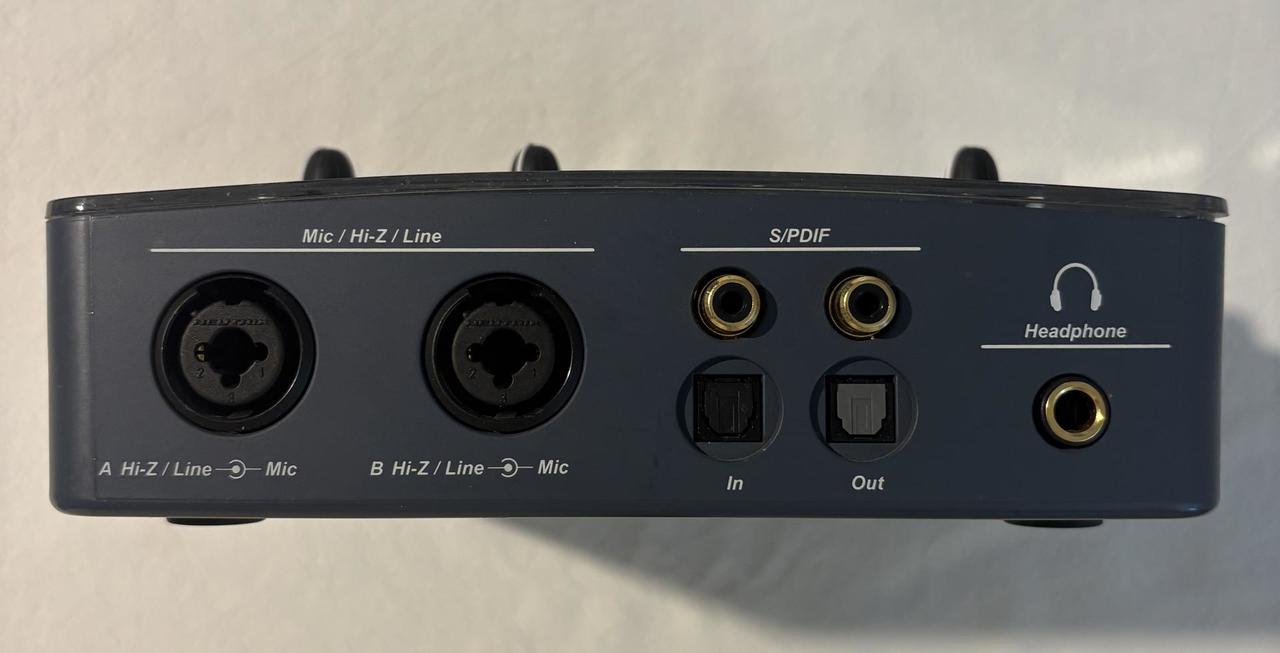 • Připojení: USB 2.0 • Rozlišení: až 24 bitů / 192 kHz • Vstupy: • 2× kombinované XLR/TRS s mikrofonními předzesilovači (s fantomovým napájením 48 V) • 2× linkové vstupy • 1× nástrojový vstup (pro kytaru, basu) • Výstupy: • 2× symetrické TRS • 1× stereo sluchátkový výstup • Další: MIDI in/out, S/PDIF (optický i koaxiální) • Ovladače: pro Windows (WDM/ASIO) a macOS