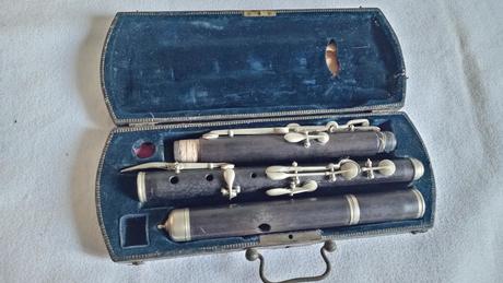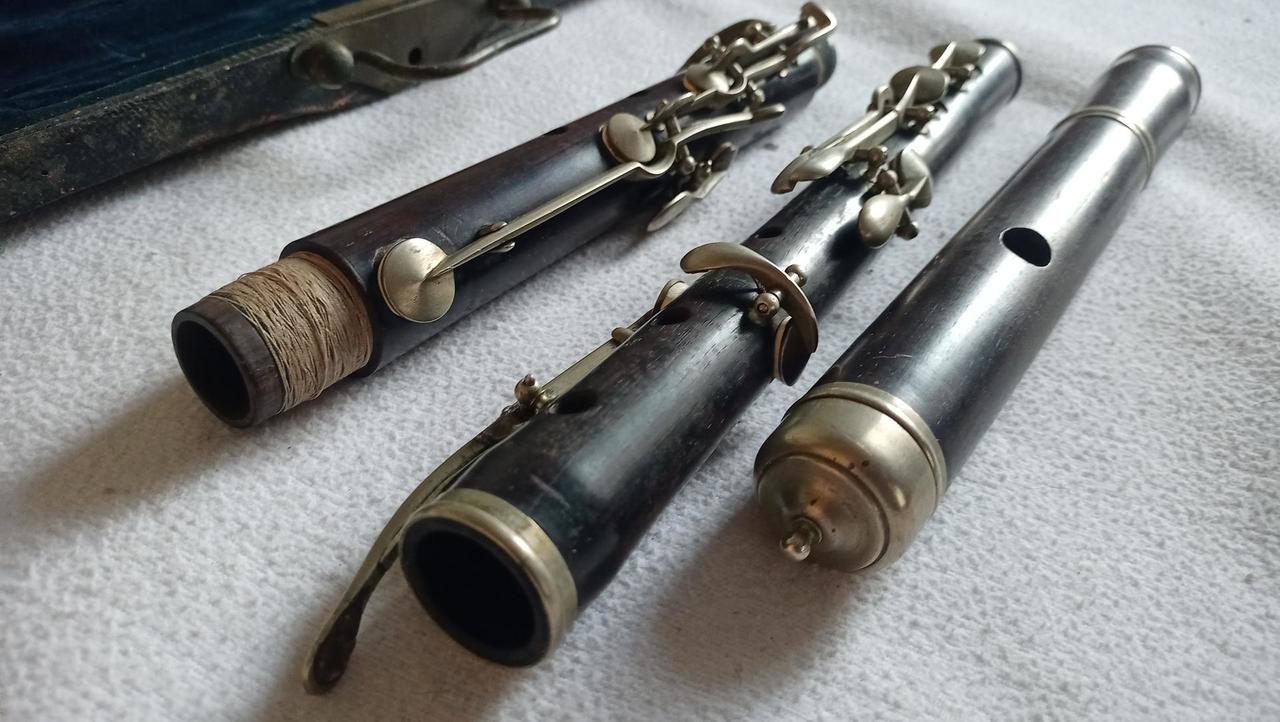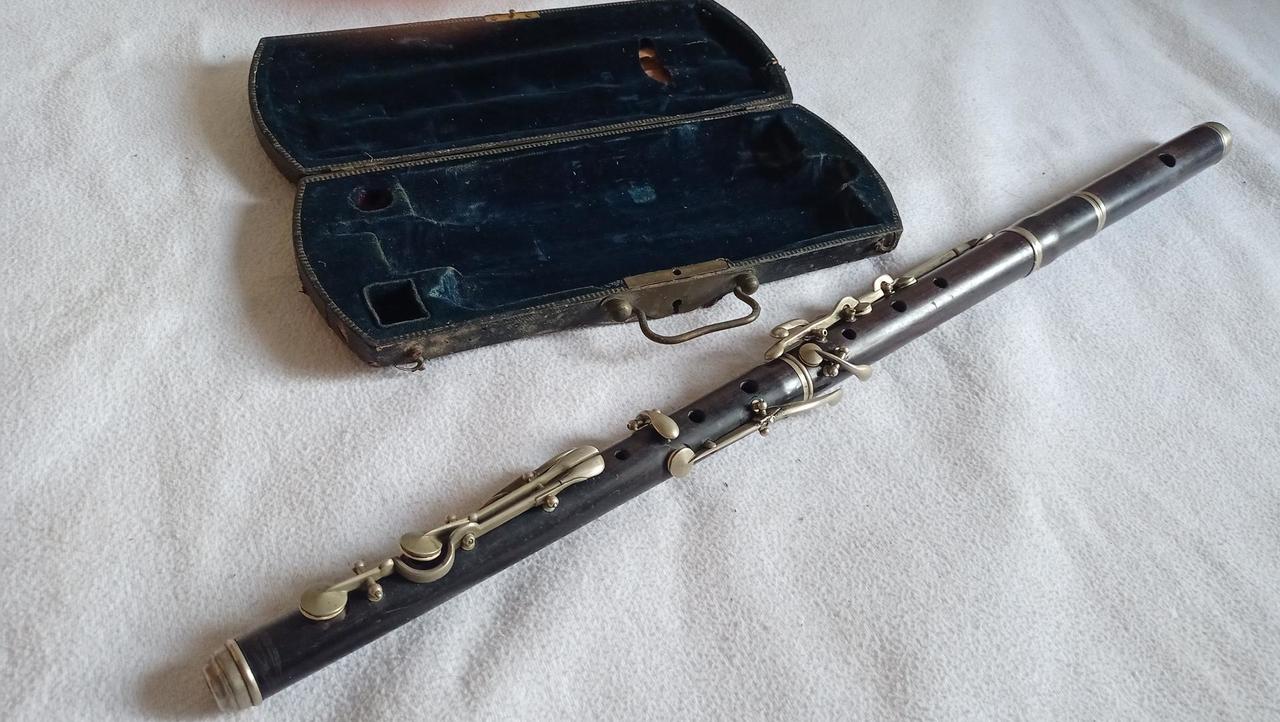 Starožitná dřevěná flétna, soudek má prasklinu.. jinak bez poškozeni, servis bude vhodný.