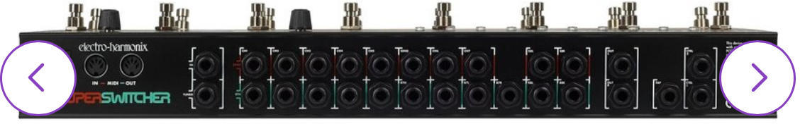 dokáže prepínať efekty zároveň kanály ampu relé switchami a zároveň prepínať midi plus výborný boost a výstup na tuner a tap všetko programovateľné jediným tlacitkom Stereo aj mono riešenia Jednoduché na pochopenie a nastavenie. Programovateľný nožný ovládač pre pedálové efekty. Super Switcher ponúka jednoduchšie ovládanie efektov a eliminuje zdĺhavé prepínanie efektov v pedalboarde. Ovláda všetky efekty pedalboardu jedným stlačením tlačidla. Výsledkom je rýchle prepínanie a kontrola nad celým pedalboardom. Zariadenie je ideálne pre správne smerovanie efektov so zapojením pred zosilňovač a do efektovej slučky. Pri koncertovaní efektívne organizuje predvoľby zapojenia do užívateľských bánk s jednoduchým prepínaním a zoznamom nastavení. Zároveň umožňuje synchronizáciu efektov s metronómom prostredníctvom MIDI. Navyše synchronizuje všetky time-based efekty (napríklad delay) pre spoločnú hodnotu master clock.