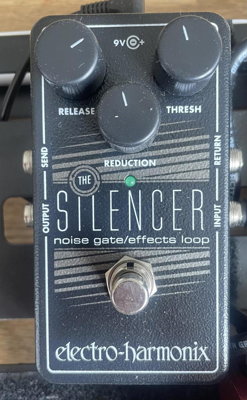 EHX Silencer je noise gate pro potlačení šumu a brumu v pedalboardu. Šumící efekty, jako distortion nebo overdrive, lze zapojit do jeho efektové smyčky, kde funguje obzvlášť účinně. Nabízí ovladače Threshold, Release a Reduction pro přesné nastavení chování gate.