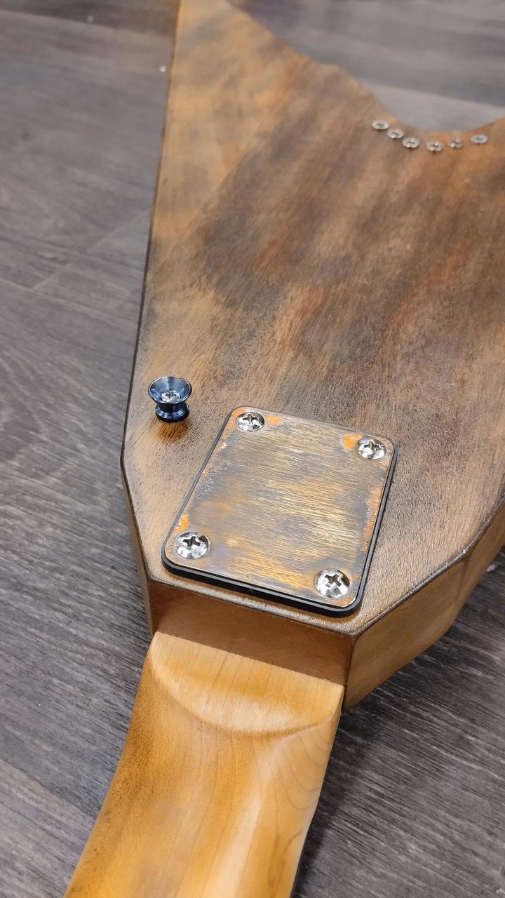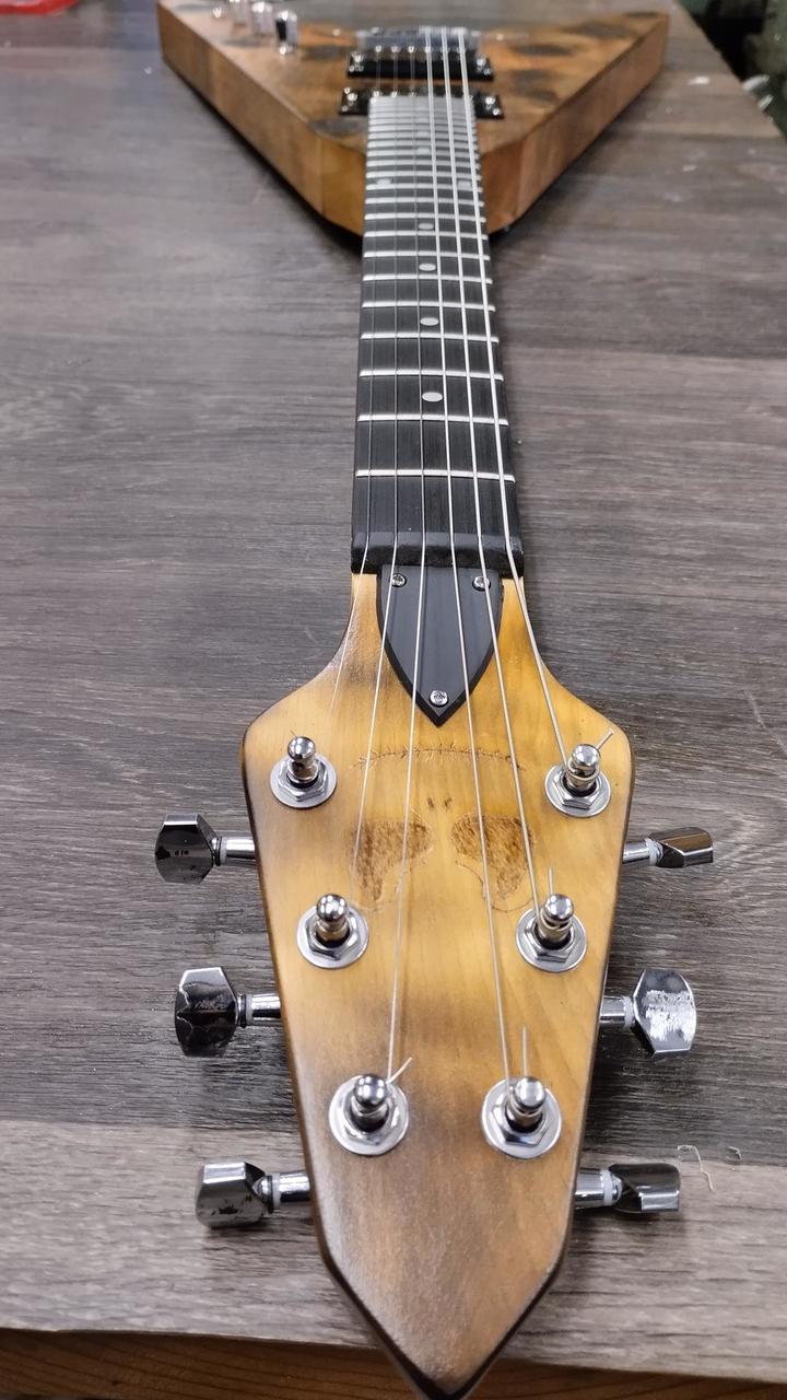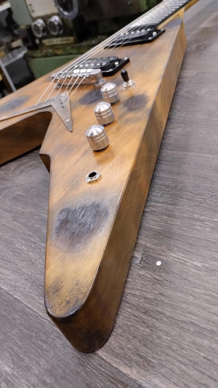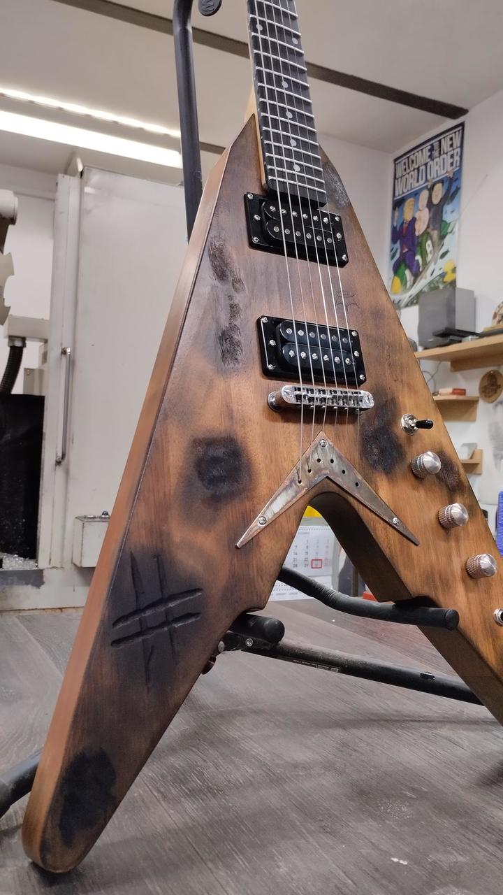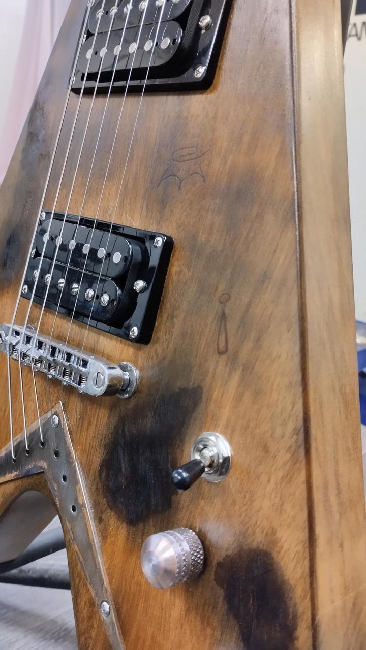Tělo je z lípy a krk z javoru, dřevo je ošetřeno ohněm a lakem. Kytara je dělaná ve stylu relic. Snímače jsou typu humbucker, které mají ostřejší zvuk, ideální na rockové a tvrdší žánry. Kytara je celkově moc pěkná a dobře hratelná.