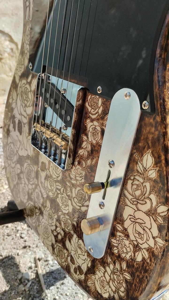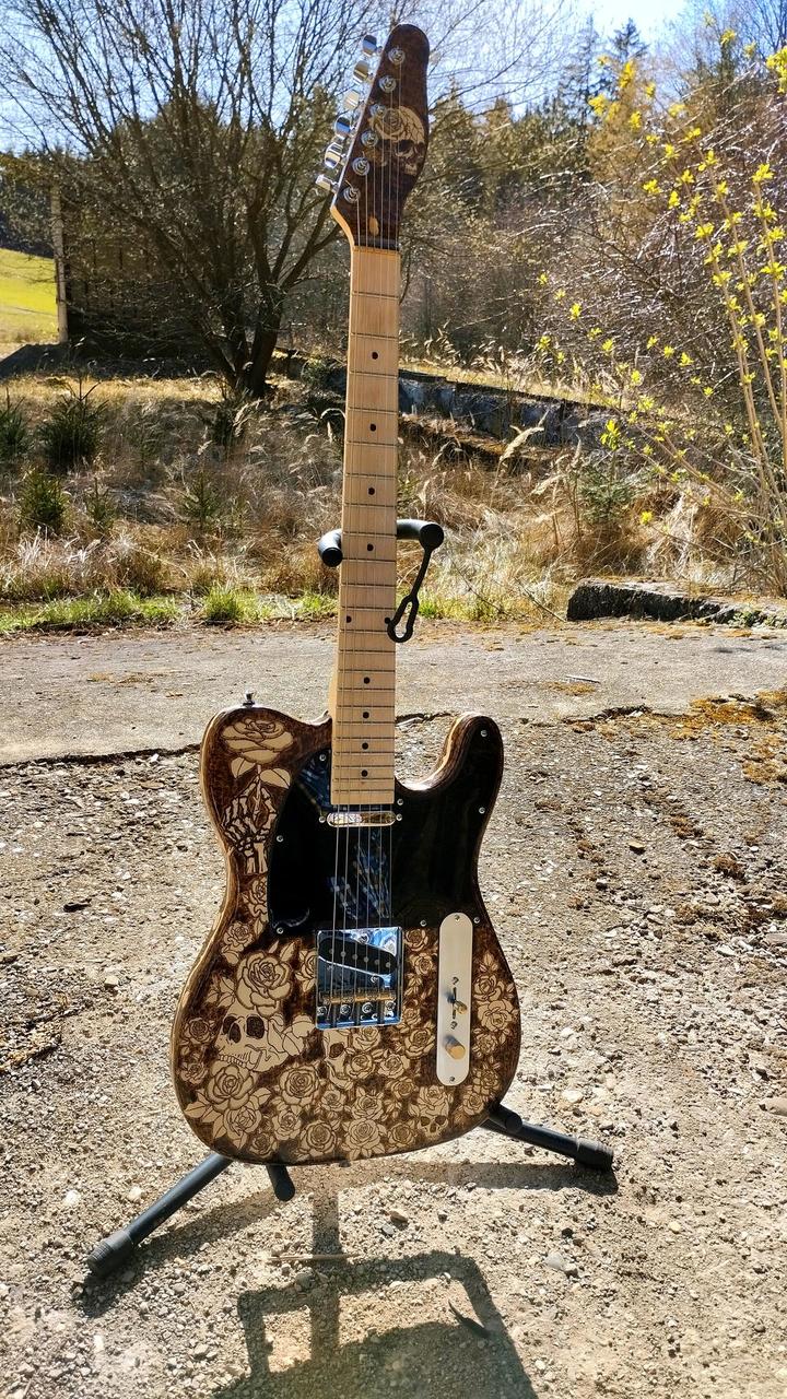 Elektrická kytara Telecaster pyrografie