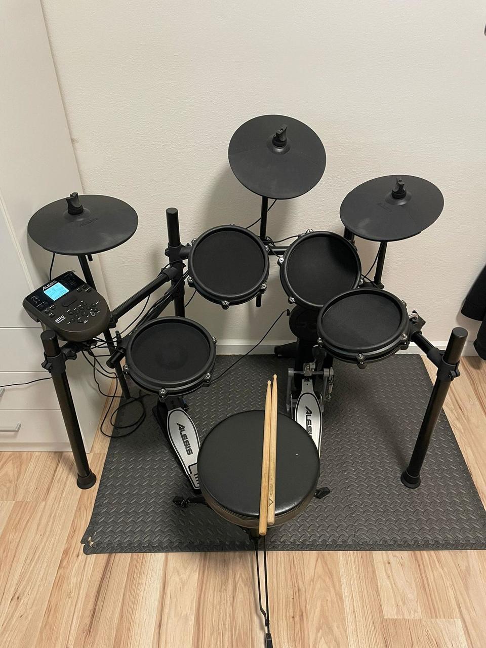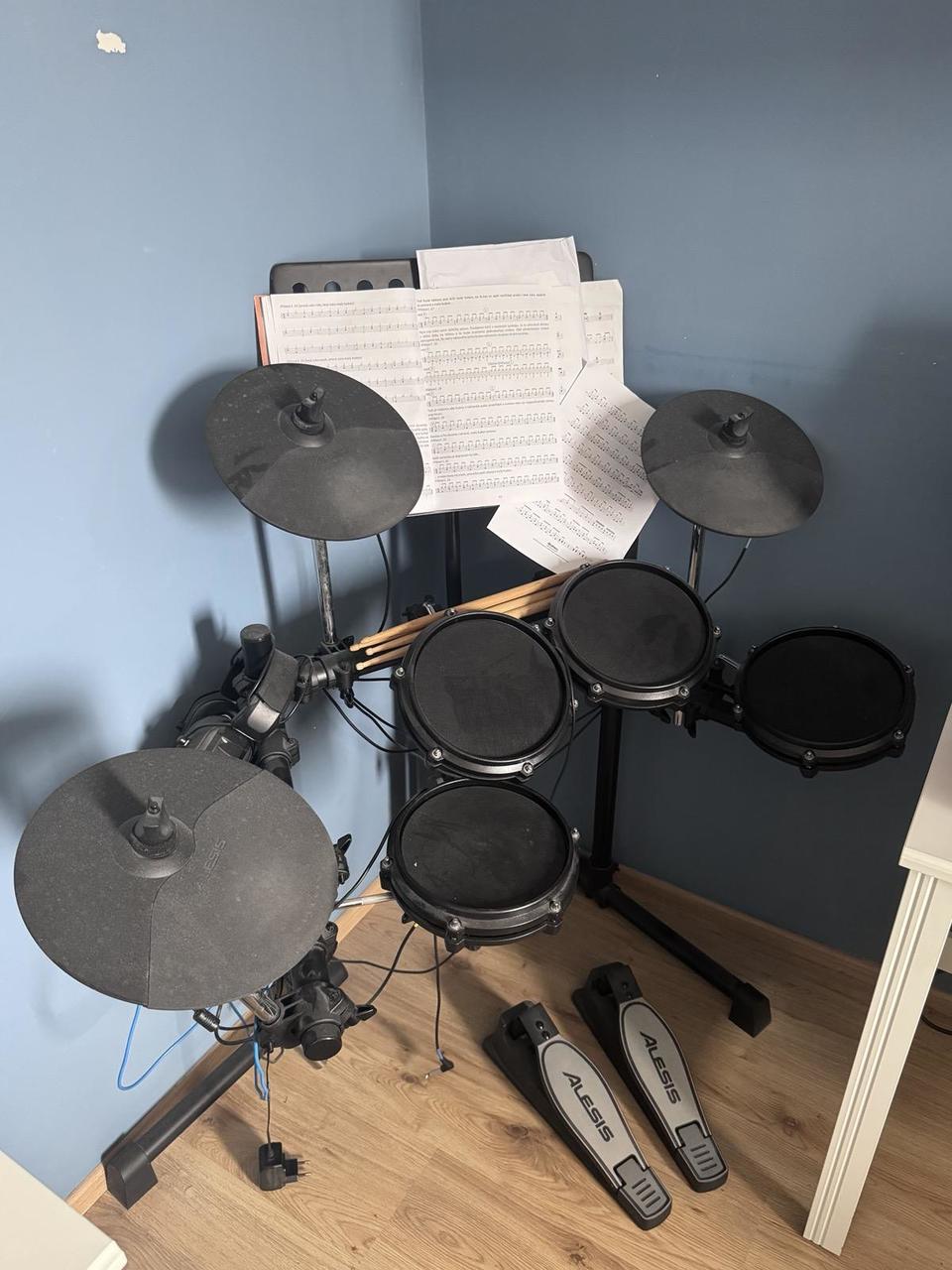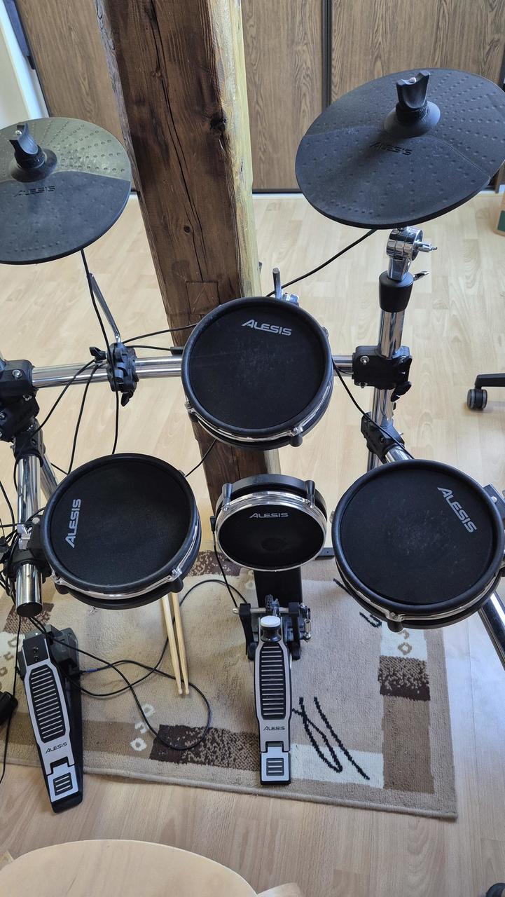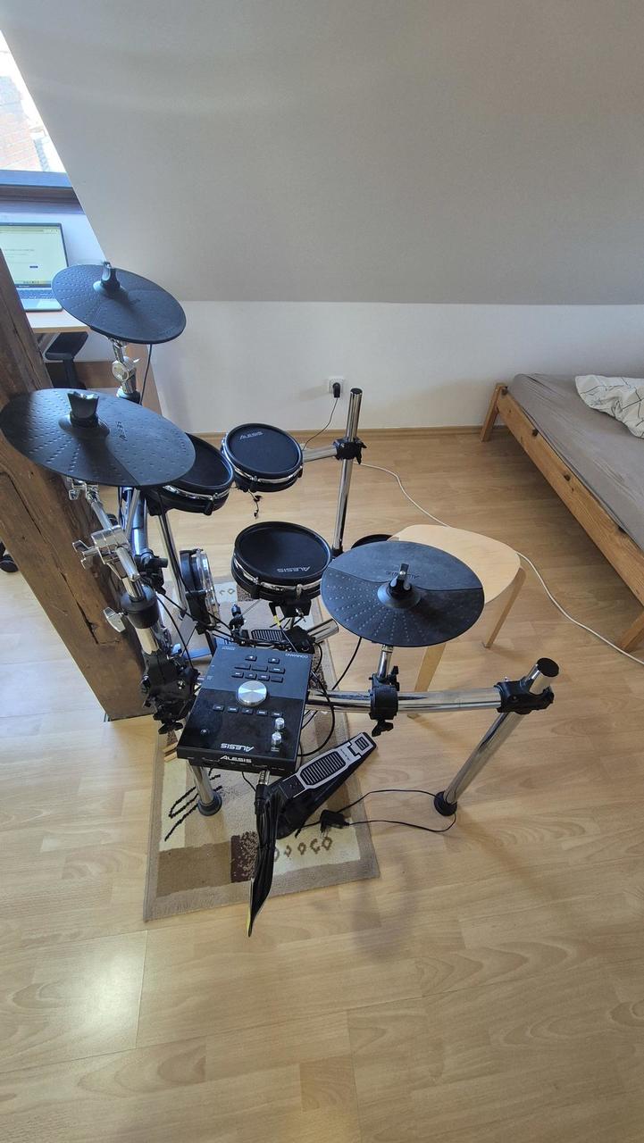 Dobrý den. Prodám téměř novou 3 měsíční sestavu Alesis Nitro Max s rozšířením o další činelu a tom ...