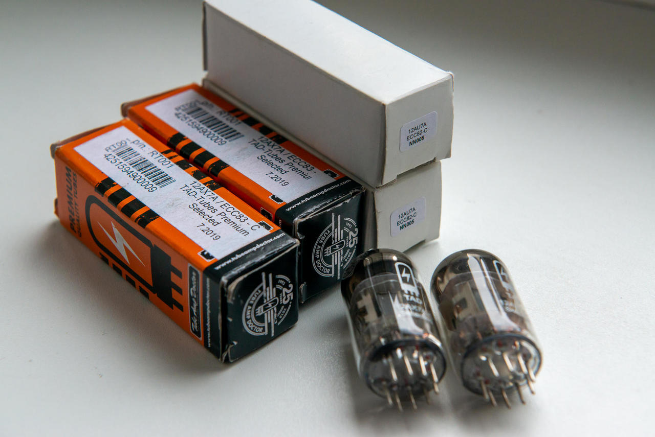 Prodano - TAD 12AX7A/EHX ECC83-C (x2) - Premium selected - 550kc/ks TAD 12AU7A/ECC82 (x2)- Standard - 440kc/ks https://imusicdata.cz/tad-12ax7a-ecc83-c-tad-lampa-do-predzesilovace Cena za vše: 1800 Kč Lokalita: Praha Možnost osobního předání nebo zaslání přes Zásilkovnu (po platbě předem). V případě zájmu mě neváhejte kontaktovat.