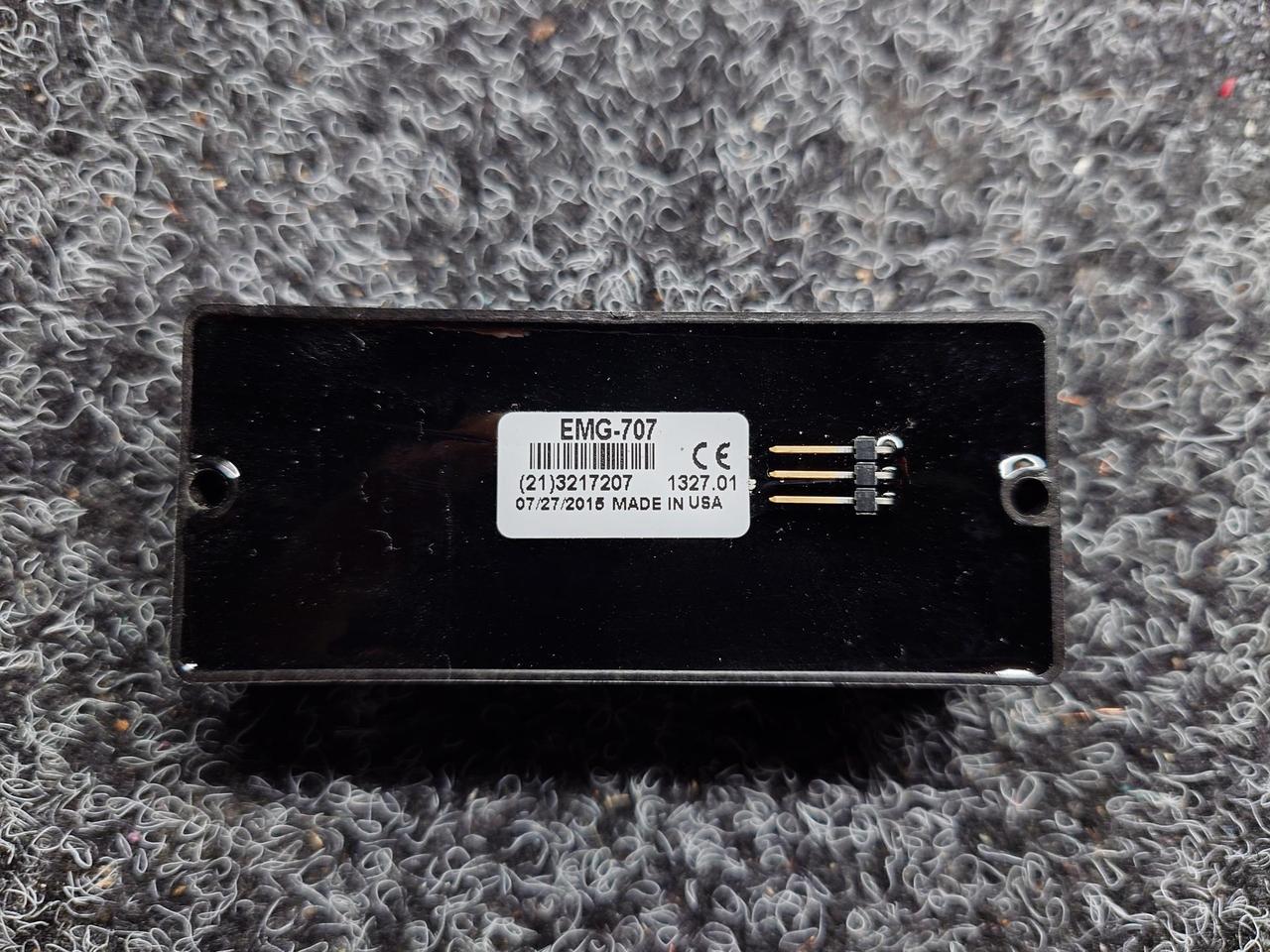Prodám aktivní kytarový snímač EMG 707 na sedmi-strunnou kytaru, made in USA. Vytaženo z SCHECTER Randy Weitzel V-7 FR. Měnil jsem za SEYMOUR DUNCAN, zvukově mi víc vyhovuje. Snímač bez dalšího příslušenství (potenciometry, jack, ...). Pouze prodej, NEVYMĚŇUJI.