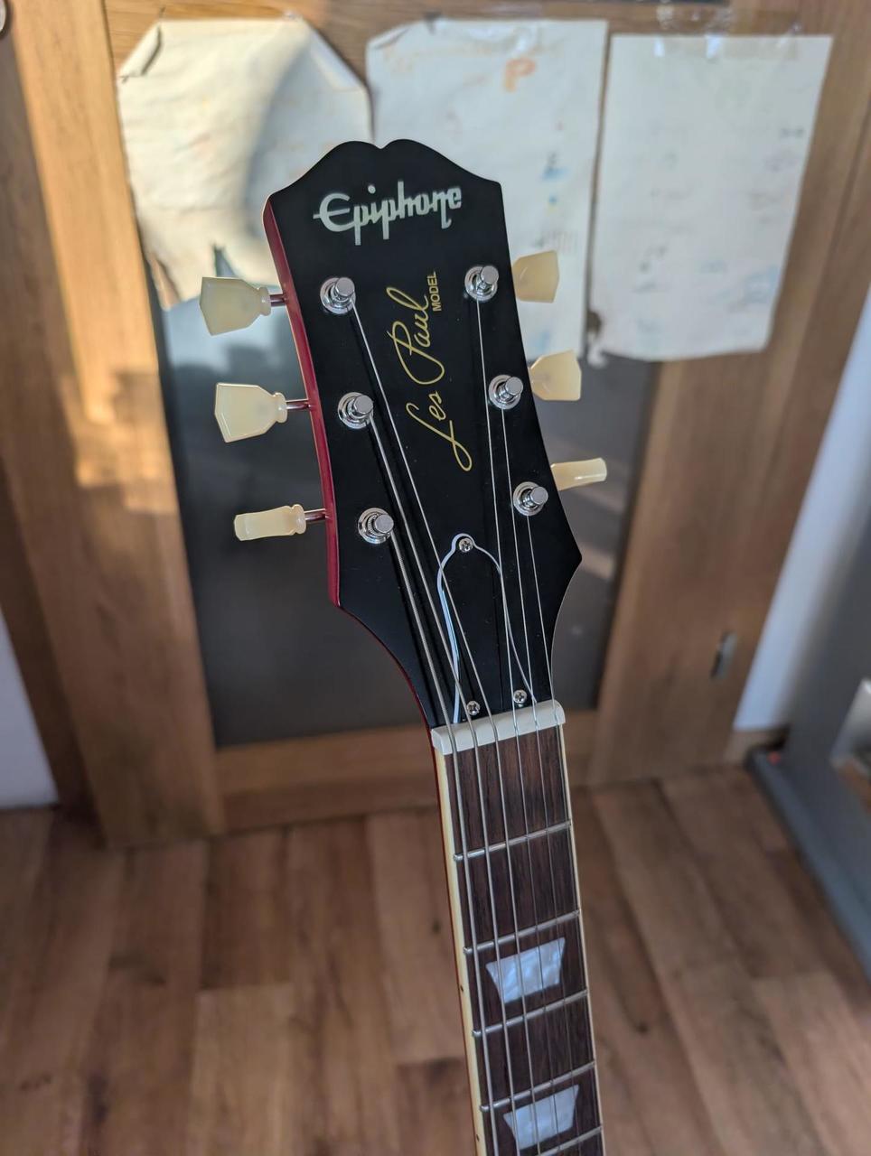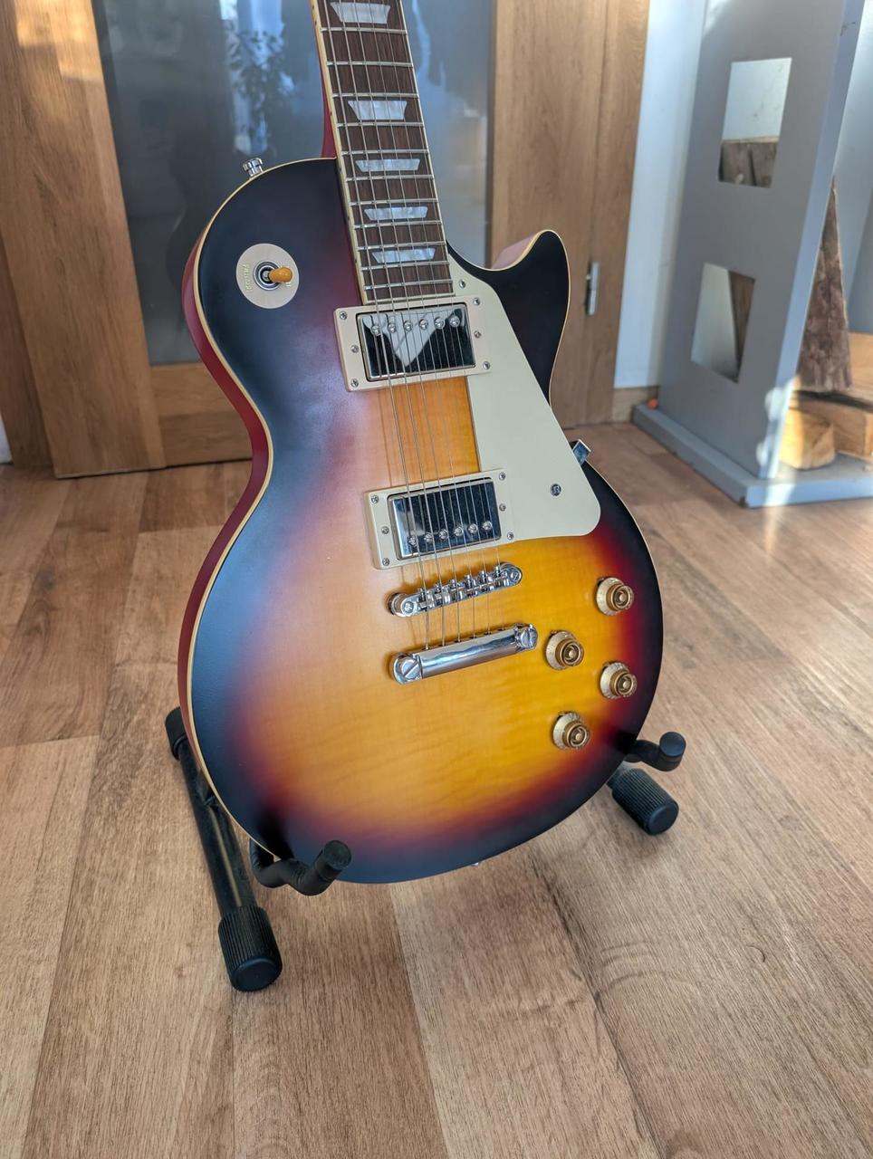 prodám tohle naprosto parádní LPéčko. To nejlepší z produkce Epiphone. Snímač: 2x Gibson Burstbucker humbucker Zapojení z 50. let s potenciometry CTS a kondenzátory Mallory Žádnej základní shit od Epiphone. Měl jsem hroznou chuť zkusit humbuckery, ale prostě já jsem ženatej milovník singlů. Kytara je úplně fungl nová. Nemá jediný škrábanec a mám veškeré papírky, příslušenství včetně parádního kufru. Byl proveden vstupní servis a to seřízení a kompletní srovnání a přeleštění pražců. Ve stavu zapojit a hrát. Ke kytaře originál kufr s růžovým polstrováním! Koukněte na video porovnání s custom shop. Možnost vyzkoušení u mě doma. Díky