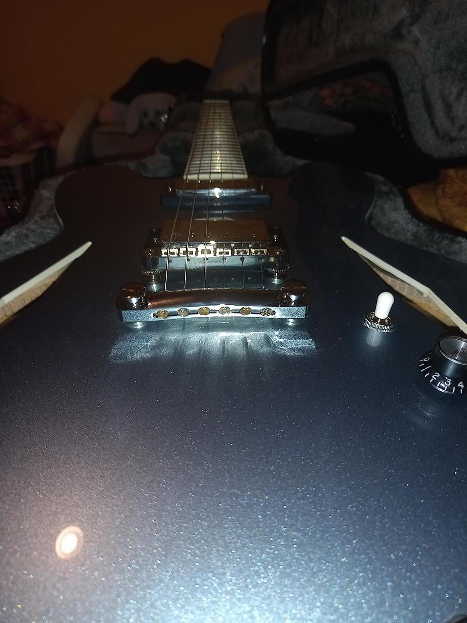 Trochu popis z internetu: V konstrukci kytary se na přání D. Grohla prolínají prvky z modelů Gibson ES-335 a Trini Lopez. Kytara tak nabízí pololubovou konstrukci těla ve stylu ES-335 zhotovenou z vrstveného javoru a topolu, jednodílný mahagonový krk, hmatník z fíkovníku osazený dvaadvaceti pražci velikosti Medium Jumbo a perleťovými polohovými bloky ve tvaru démantů (Mother-of-Pearl Split Diamond) nebo hlavici ve stylu kytar Trini Lopez s ladícími mechanikami Grover Mini Rotomatic. O ozvučení nástroje se starají preferované humbuckery Gibson USA Burstbucker, s modelem Burstbucker 2 na krkové pozici a modelem Burstbucker 3 na kobylkové.