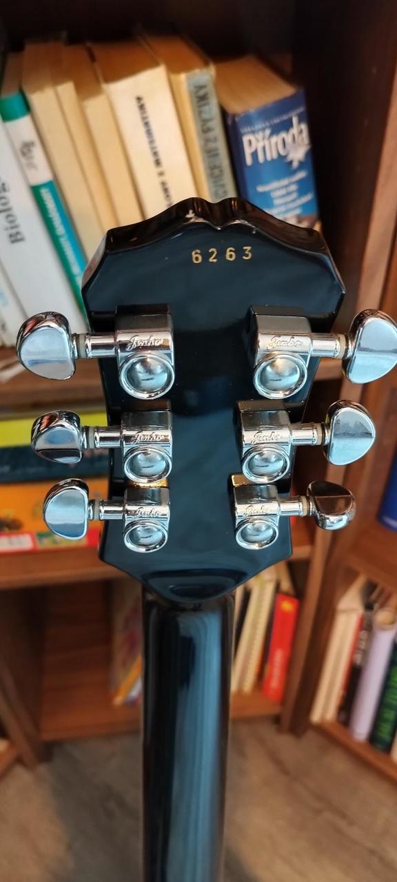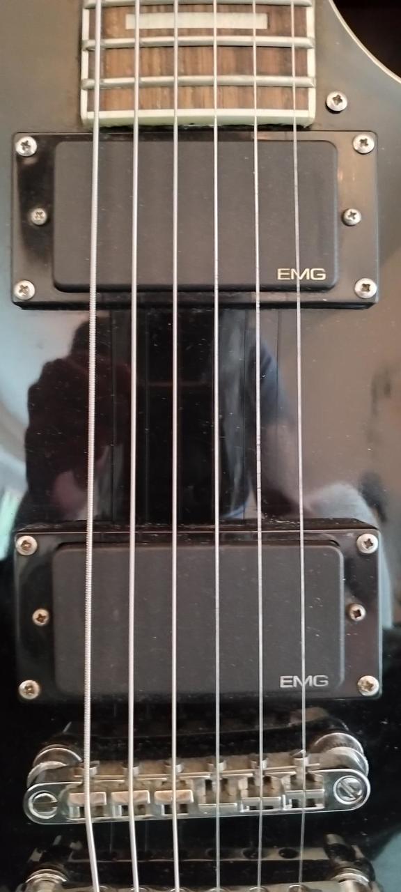 Kytara má blokové inlaye, binding na těle i krku a klasické LP ovládání (2x volume, 2x tone). Velmi pohodlná a univerzální kytara, vhodná zejména na rock a metal. Osazeno aktivními snímači: - EMG 81 (kobylka) - EMG 85 (krk) → ideální na tvrdší styly, silný a konkrétní zvuk (napájení 9V baterií) Stav: - plně funkční - běžné škrábance zezadu od pásku - drobné oděrky na krku - jinak velmi pěkný stav (viz foto) Další info: - snímače jsou upgrade (ne původní) - sériové číslo není klasicky dohledatelné Součástí je pevný kufr (hardcase). Cena: 14 500 Kč (dohoda možná) Ideálně osobní předání: Kladno, Slaný, Praha.