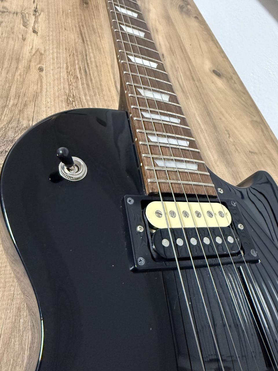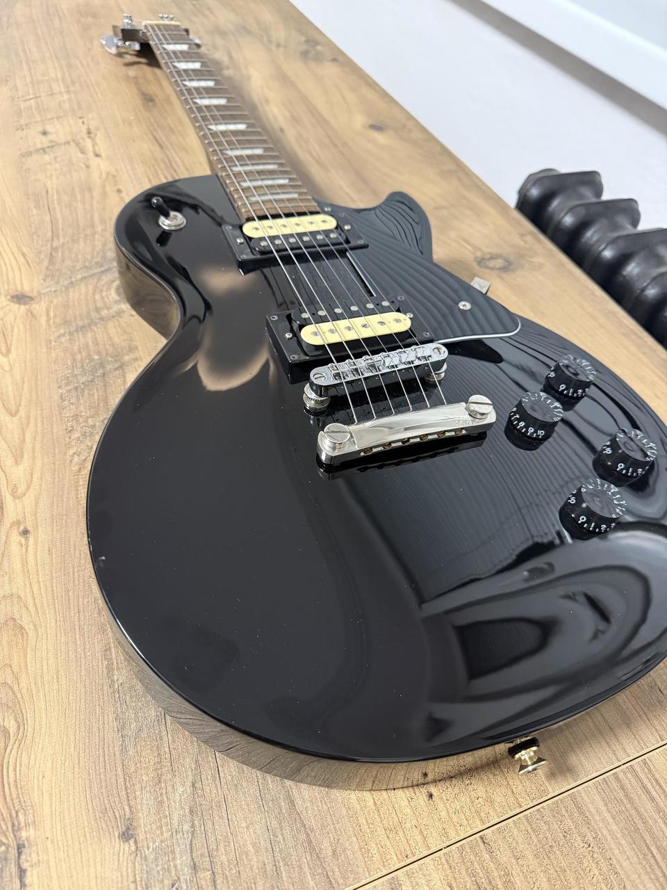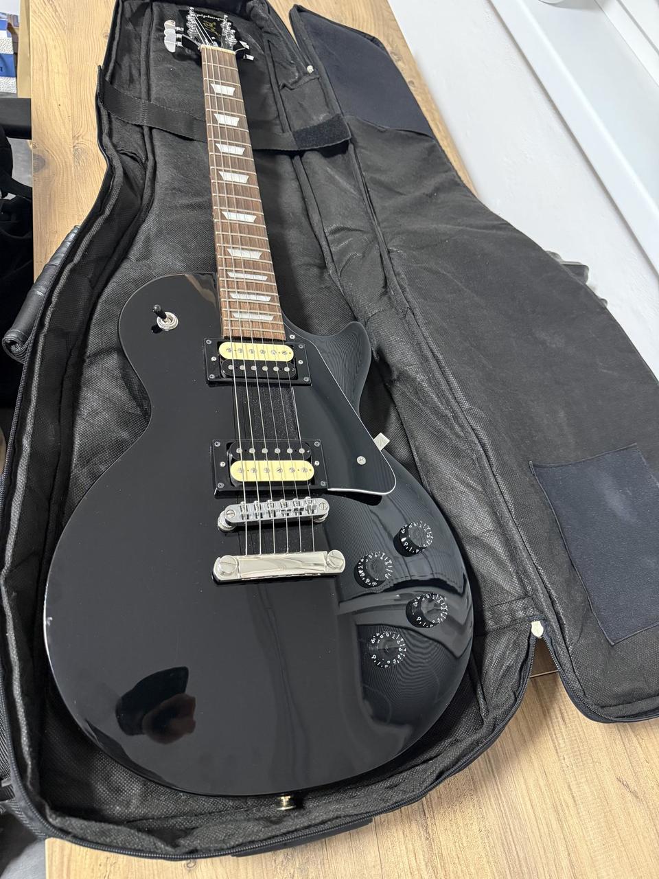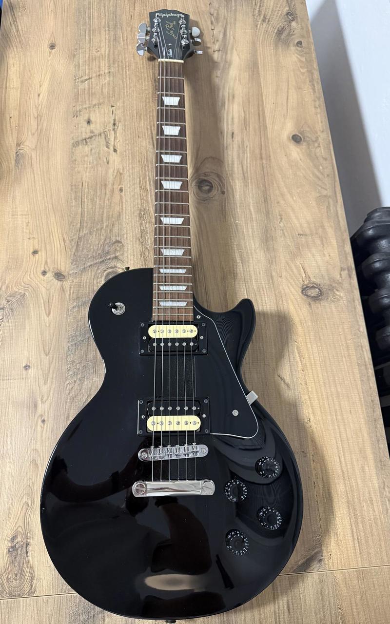 Nabízím elektrickou kytaru Epiphone Les Paul Studio v elegantní lesklé černé barvě.