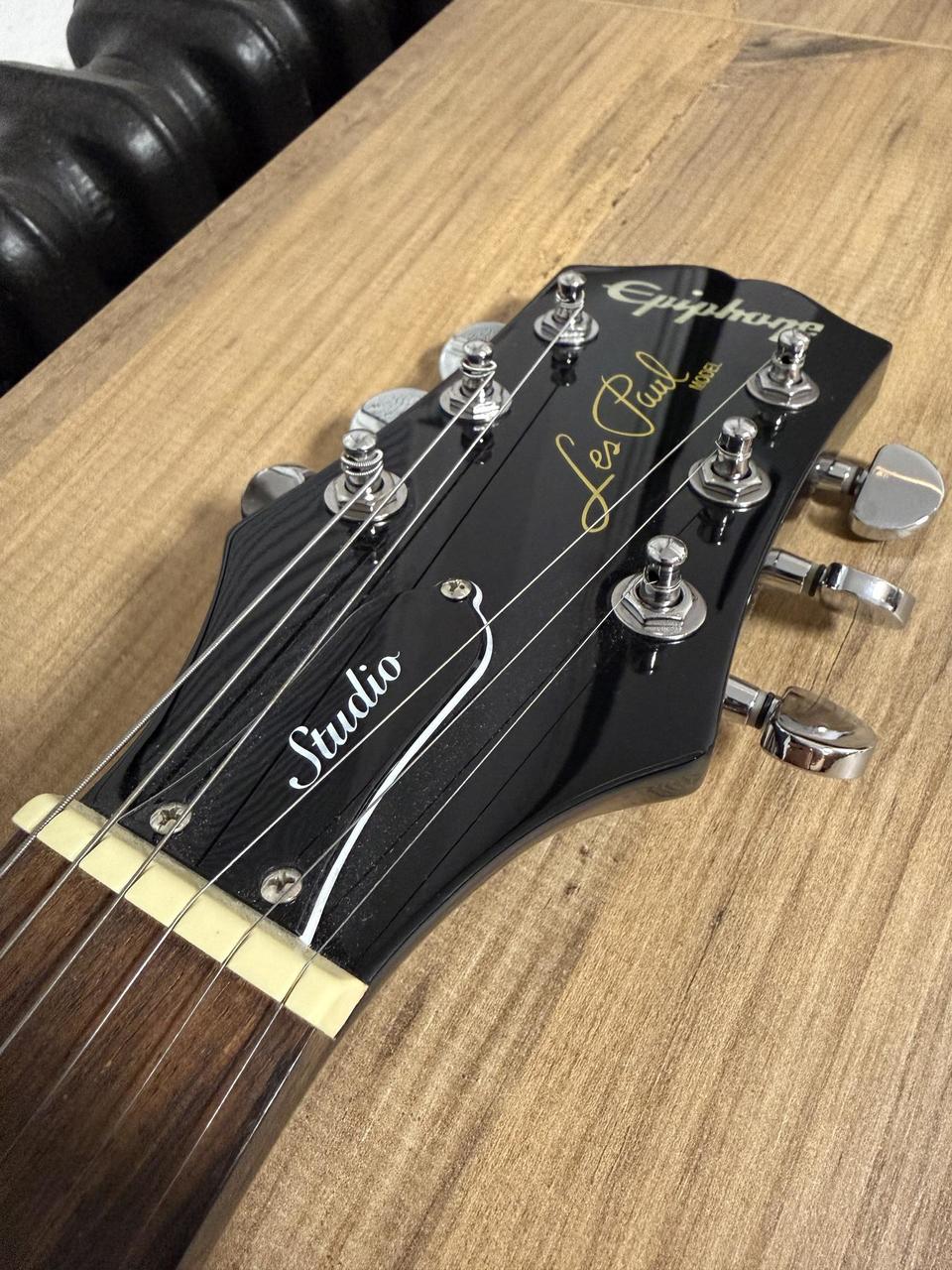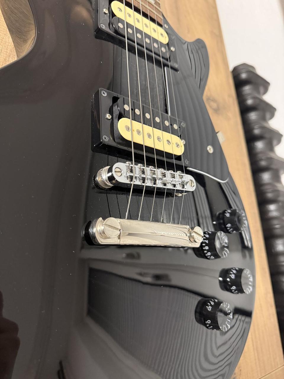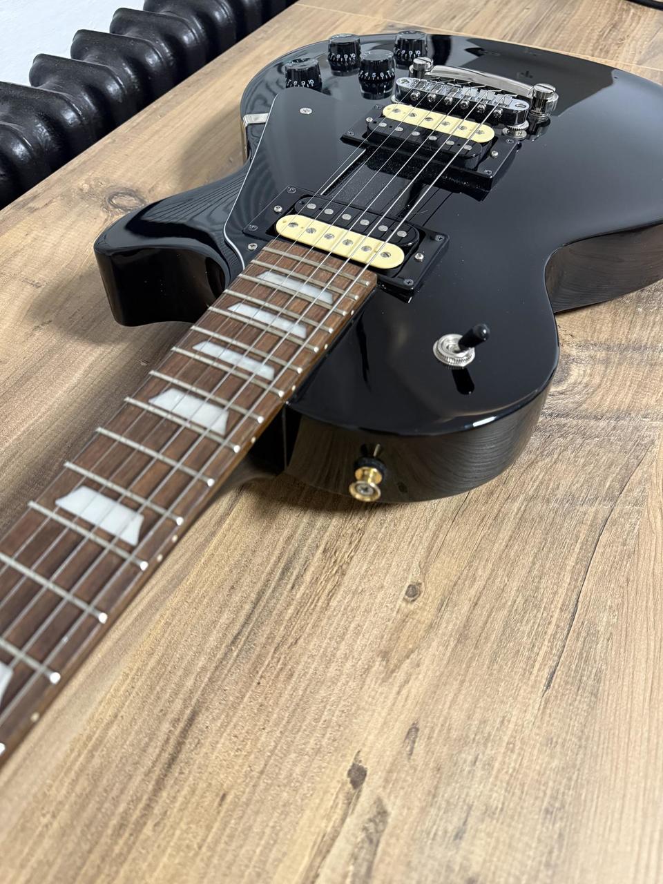 Nabízím elektrickou kytaru Epiphone Les Paul Studio v elegantní lesklé černé barvě.