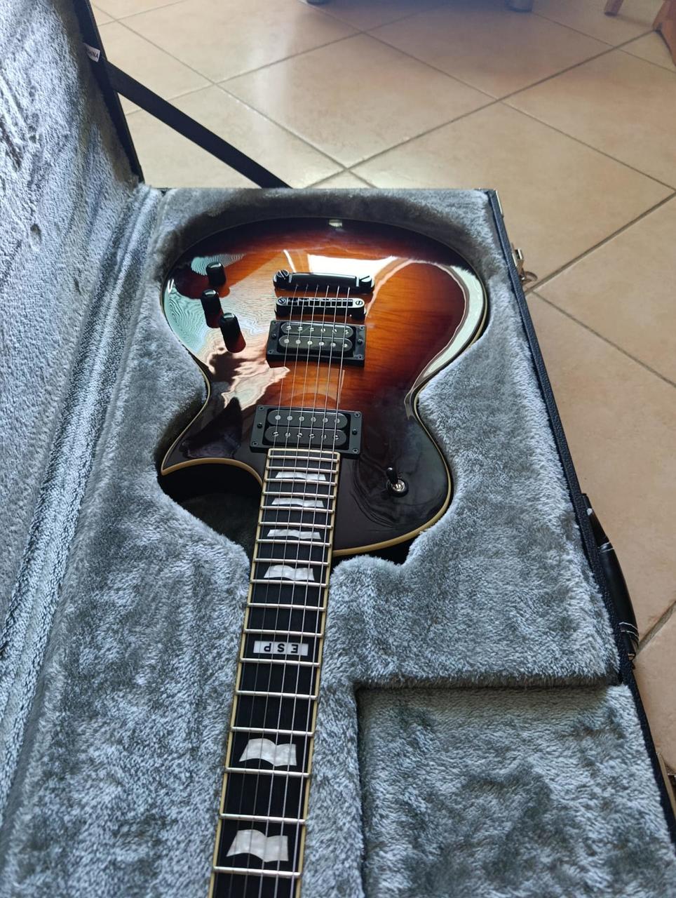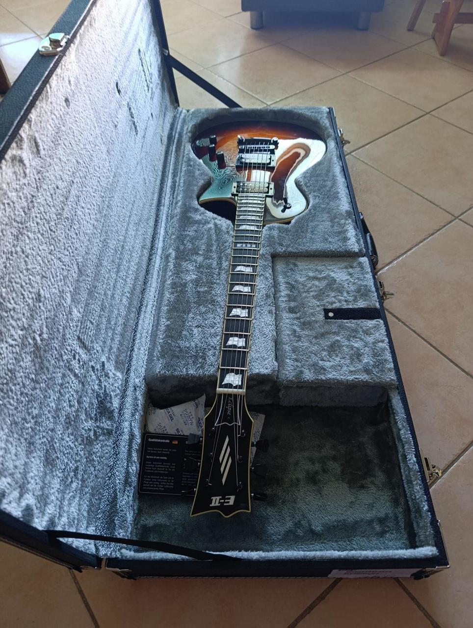 ESP E-II Eclipse Full Thickness Tobacco Sunburst je elektrická kytara v tradičním single-cut (LP) designu s masivním tělem s plnou tloušťkou bez jakýchkoliv úlev. Mahagonové tělo kytary zdobí masivní javorový top (maple cap) a efektní vrchní dýha z fládrovaného javoru podpořená barevnou úpravou Tobacco Sunburst. K mahagonovému krku s konstrukcí set-thru, tj. krkem zapuštěným hlouběji do těla, je přilepen ebenový hmatník osazený dvaadvaceti pražci velikosti Extra Jumbo. Orientaci na hmatníku usnadňují polohové bloky a ESP inlay na dvanáctém pražci.. Dva aktivní humbuckery Fishman Fluence Open Core Classic poskytují kytaře nejen parádní dynamiku a precizní artikulaci tónu, ale především díky dvěma Push/Pull ovladačům i naprostou zvukovou univerzálnost. Každý humbucker nabízí tři různé zvukové charaktery, které vám umožní přecházet mezi širokou škálou hudebních žánrů – od jazz/blues a klasického rocku/hardrocku po metal. Ke standardním úpravám kytarového tónu slouží dva potenciometry hlasitosti, tónová clona a třípolohový přepínač snímačů. Struny jsou ukotveny v uzamykatelných mechanikách značky Gotoh a v kobylce Gotoh TOM a struníku.