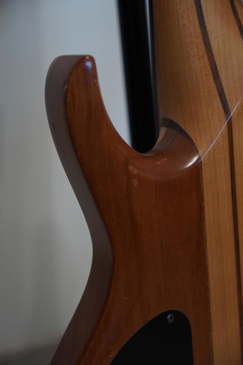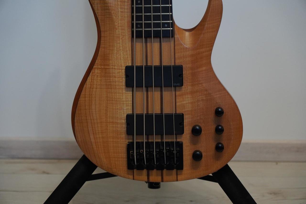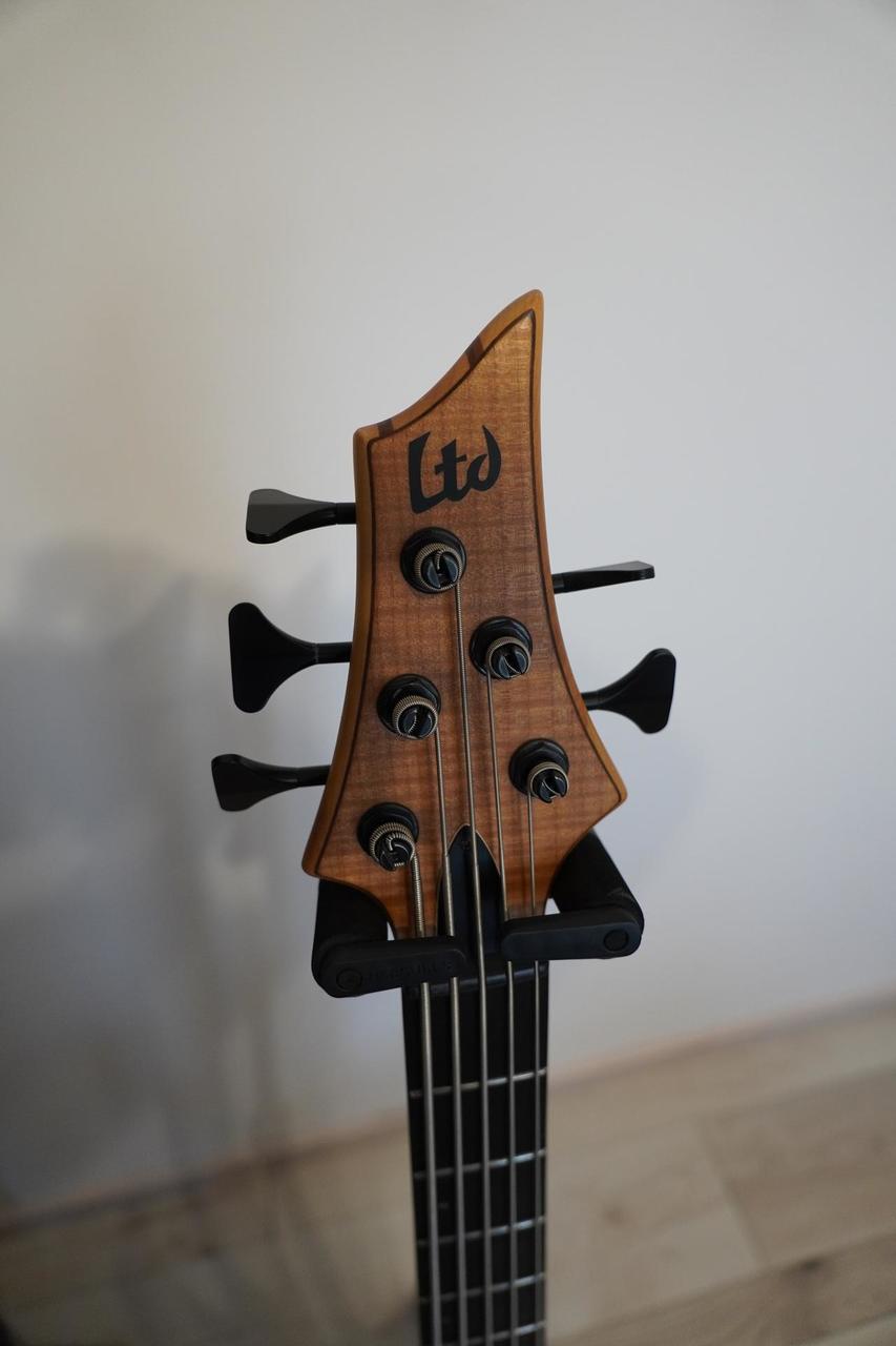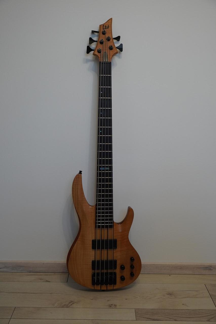 Prodám tehdejší nejvyšší model LTD. Tělo mahagon, top javor. Krk průchozí javor / ořech. Hmatník eben. Kobyla a mechaniky Hipshot. Snímače EMG - jeden rozpínatelný na singl. Aktivní elektronika. Drobné ťukance viz foto, ale na funkci to nemá vliv.