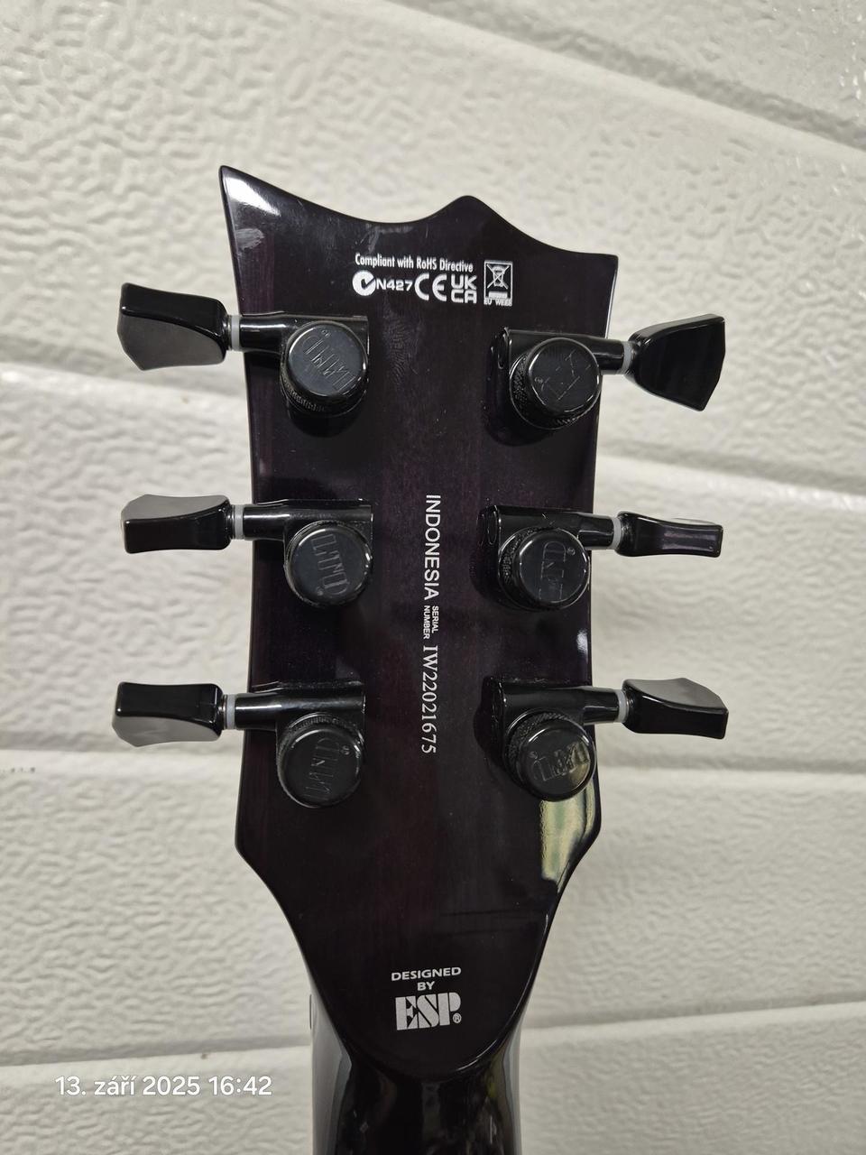 ESP LTD EC-1000 QM STPSB DELUXE ...Brutalne hrající nástroj seřízen k dokonalosti... Krk dohmat je perfektní, prebrousene pražce snímače dymytry EMG 57/66, nultak Graphtech TUSQ, Schaller GTM kobyla mosaz, zamykaci mechaniky,
