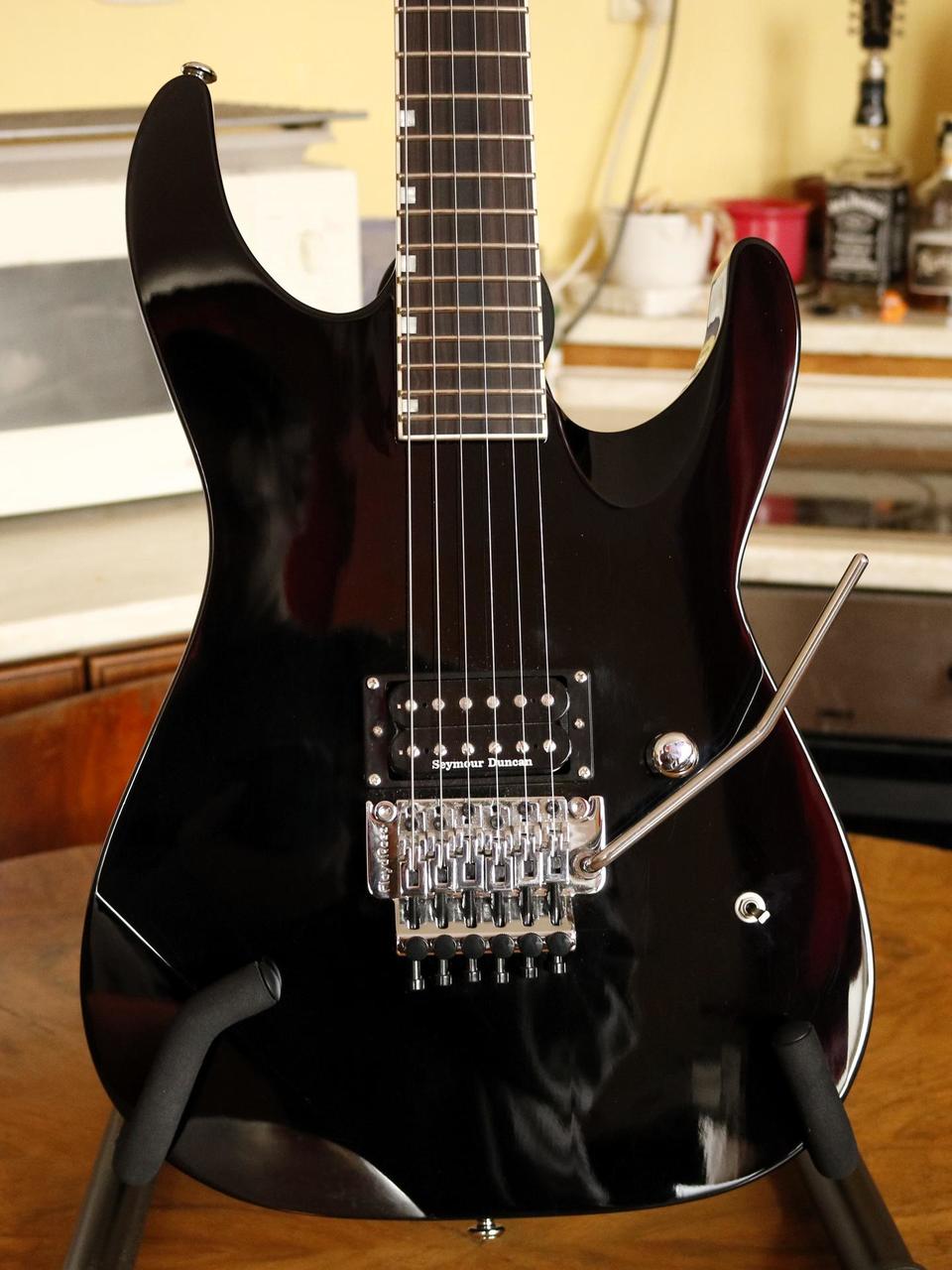 Kytara je ve výborném, téměř sběratelském stavu, bez škrábanců či technických vad. Byla hraná minimálně a vždy pečlivě skladovaná. Jedná se o reissue model inspirovaný klasickými superstraty z konce 80. let, ideální pro rock a metal. Specifikace: Tělo: olše Krk: javor, průchozí Hmatník: makasarský eben Snímač: Seymour Duncan Distortion s rozepínáním Tremolo: Floyd Rose 1000 Jednoduché ovládání – volume + kill switch Součástí prodeje je veškeré originální příslušenství, včetně tremolo páky, imbusů a originální krabice. Kytara je připravená k okamžitému hraní, bez nutnosti dalších investic.