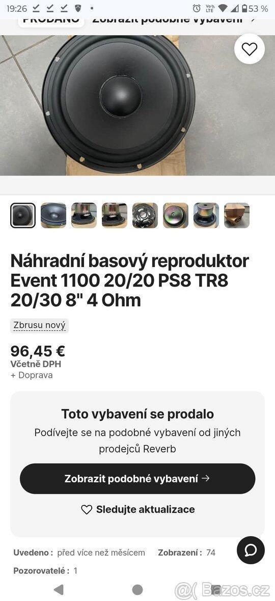 Reproduktory výškový i basový jsou naprosto v pořádku bez poškozeni. Pokud by někdo by se někomu hodila do rezervy na repro atd .je možnost .dohoda. Reproduktory pasují i do starších modelů 20/20pasiv ,aktiv ale i třeba nebo třípásmový model 2030 , PS8 atd Měl jsem tři kusy tento byl jako záloha kdyby se něco stalo s repro třeba . Prodávám za cenu cca jednoho basáku