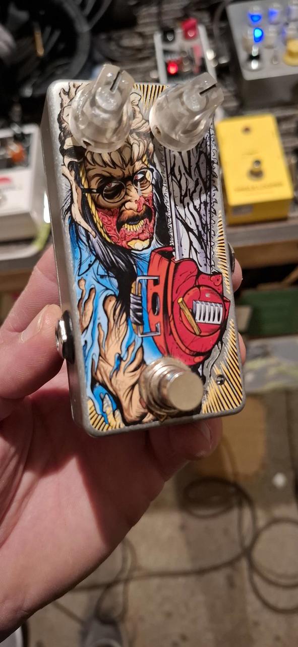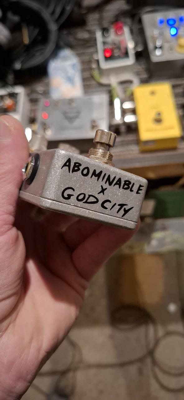 Prodám kytarovej mini pedál Evil Ned. Je to kolaborace Abominable/Godcity. Zvukově je to čistější, míň basovej a konkrétnější HM2. Levej knob je blend ( přimíchává zvuk HM2 ), pravej je gain.
