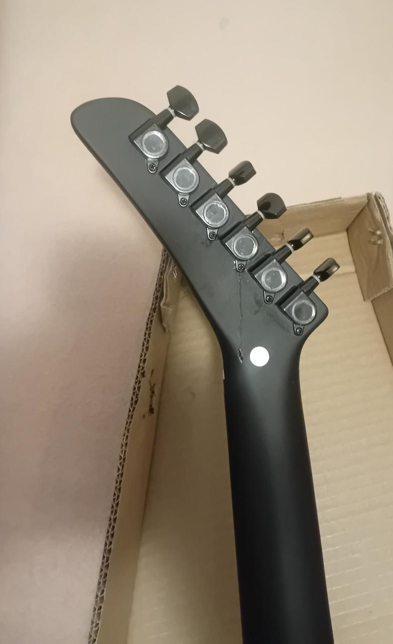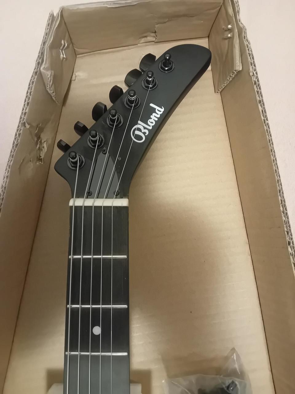 Prodám el. kytaru ve stylu Exlorer - Blond EXP-1 Black Edition. Kytara mělá nalomenou hlavu, nyní vše funkční.