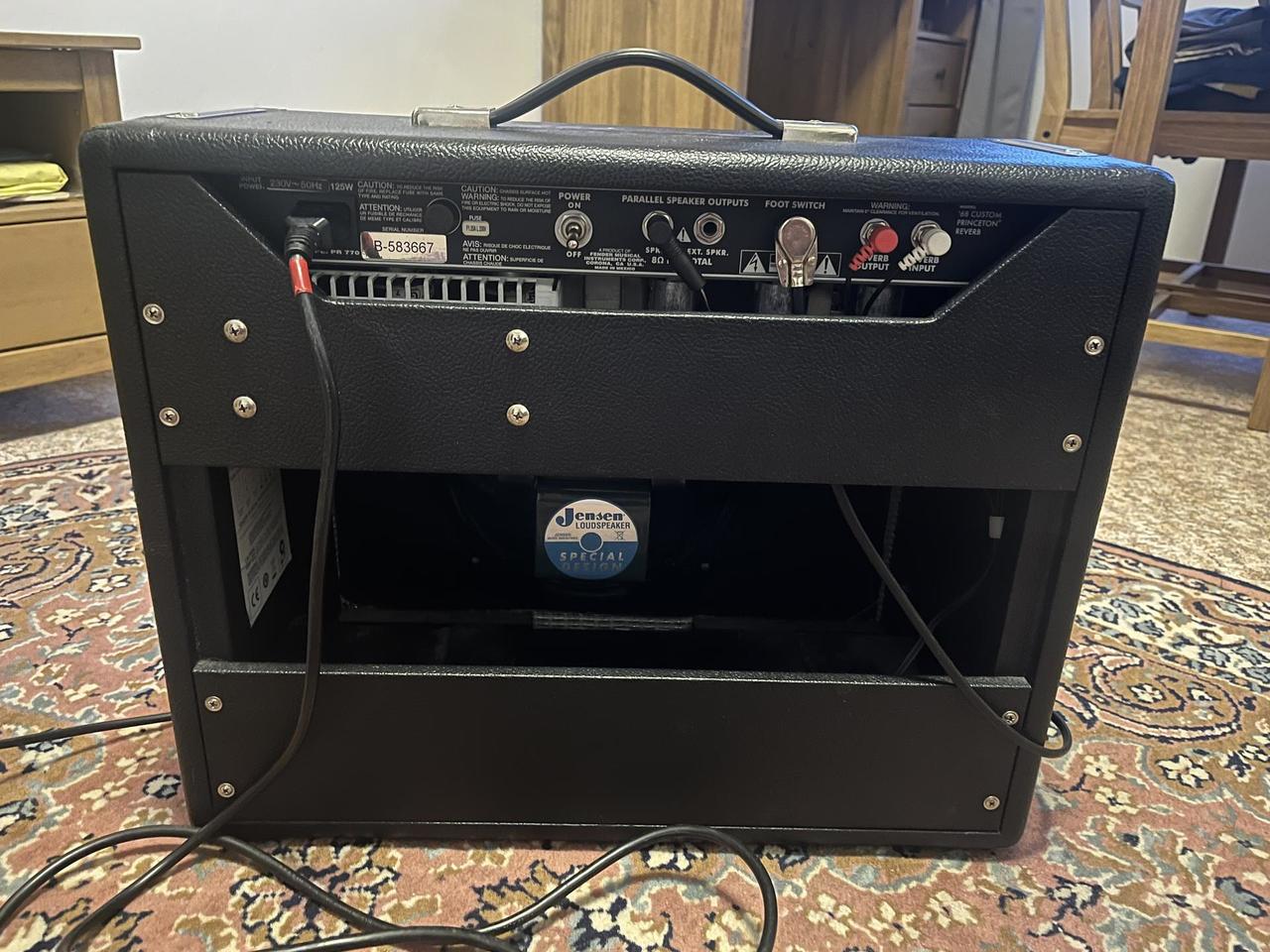 Nabízím legendární lamové kombo Fender 68 Princeton reverb silverface. Reproduktor Jensen speciál blue, pružinový reverb, lampové tremolo. Lampy jsou tam asi 3 roky, ale z toho dva roky mi kombo stojí doma nepoužívané. Footswitch a obal součástí. Více technických specifikací v odkazu. Možná je i výměna za Fender Vibrochamp nebo Vox ac 15 s případným doplatkem.