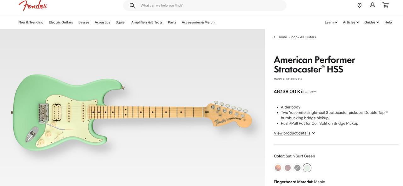 !!! Oficiální "Fender.com" American Performer HSS cca 1 849 € (≈ 46.138,00 Kč ) !!!