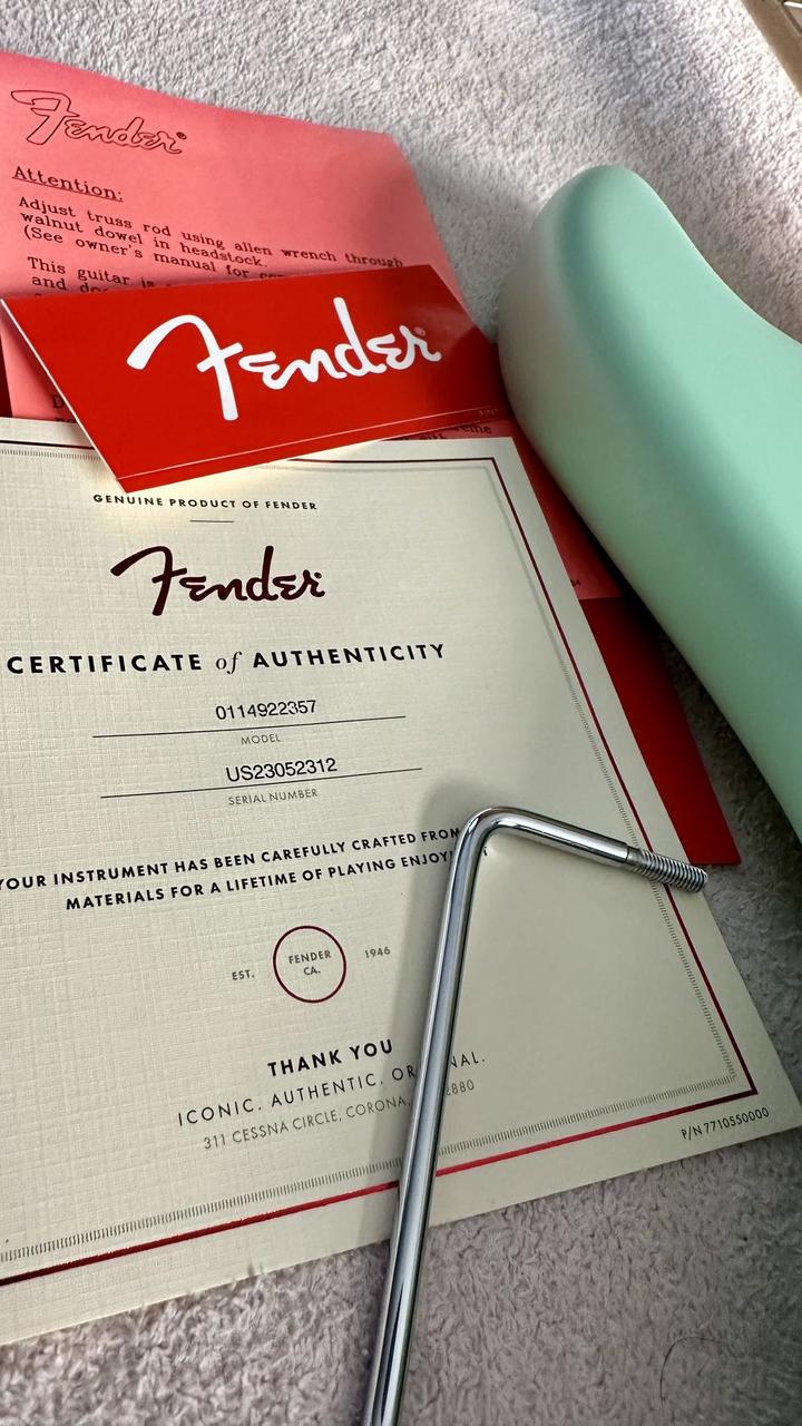 Prodám Fender American Performer Stratocaster v konfiguraci HSS a provedení Satin Surf Green. Jsem 1. majitel, kytara byla koupena 11. 3. 2024 (Kytary.cz. - pečlivě vybíraná z 5-ti kusů (jiné varianty) na prodejně v Brně, excellent stav, foto realné) • Tato barevná varianta (Satin Surf Green s javorovým hmatníkem) je již v ČR nesehnatelná, mimo marketplace samozřejmě. • Oficiální cena 2026: Na webu Fender.com se aktuálně modely American Performer prodávají za 1 849 € (cca 46 000 Kč) • Záruka: Kytara je v plné záruce u Kytary.cz až do března 2027. Fakturu (záruční list) předám s nástrojem. • 100% Původní „Factory“ stav: Na kytaru nebylo nikdy sáhnuto páječkou. Elektronika, snímače, hardware – vše je původní bez jakýchkoliv modifikací. Nastavoval jsem pouze výšku strun pro optimální dohmat. Technické specifikace: • Původ: Made in USA (Corona, California). • Sériové číslo: US23052312. • Snímače: Yosemite Single-Coils + DoubleTap Humbucker (vynikající dynamika a čistota). • Elektronika: Push-pull (rozpínání humbuckeru) + Greasebucket Tone Circuit (ubírá výšky bez přidání basového „bláta“). • Krk: Javor, profil Modern C, 22 Jumbo pražců, radius 9.5". Stav: Nástroj je vizuálně i technicky jako nový, pražce bez známek opotřebení. Příslušenství: Certifikát pravosti (COA), tremolo páka Poznámka: Na českém Fender webu je nyní American Performer Stratocaster HSS uveden za 46.138,00 Kč. Varianta Satin Surf Green (maple) je v ČR nadále nedostupná; například Kytary.cz ji vede jako „Tento produkt již není v prodeji“. Řada American Performer se zřejmě postupně doprodává, ale Fender zatím veřejně neoznámil její oficiální ukončení.