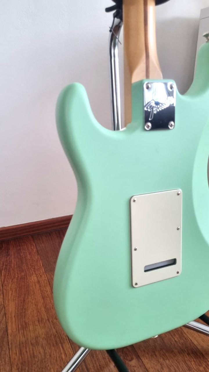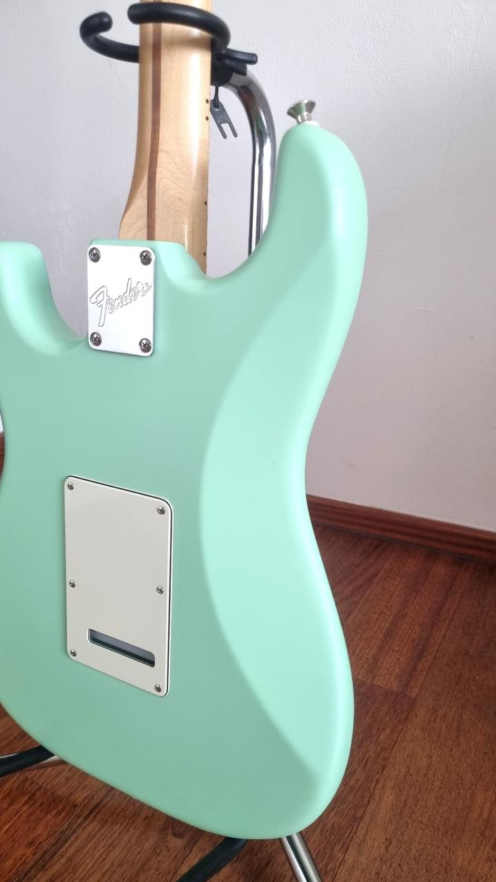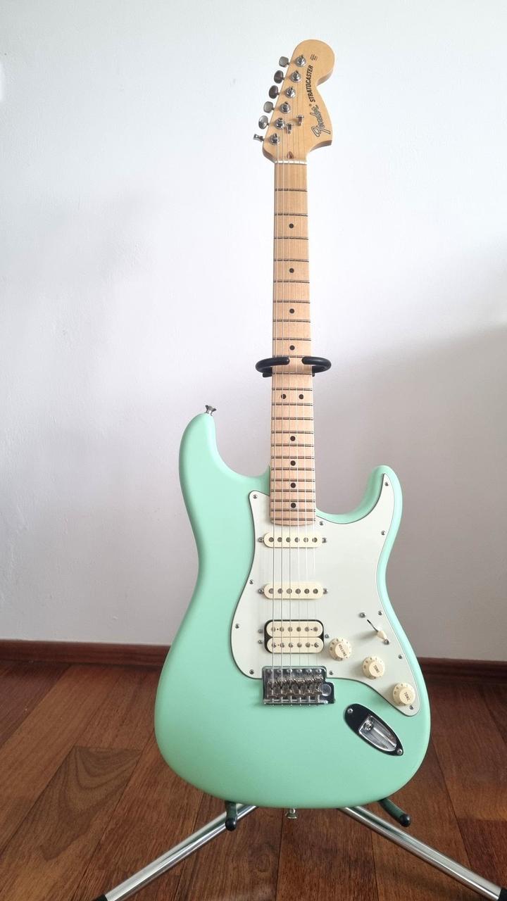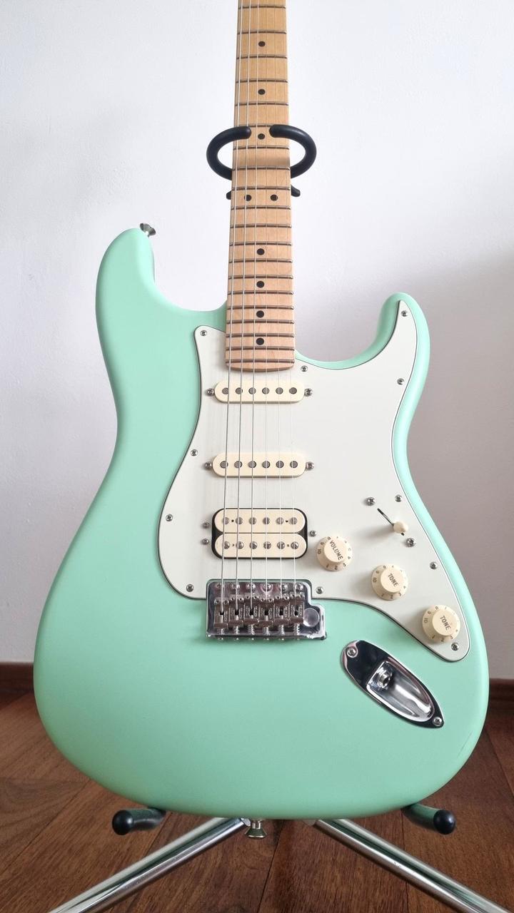- tělo olše, v matné barvě satin surf green, krk javor - HSS konfigurace snímačů, rozepínatelný humbucker s Greasebucket obvodem (definovaný konkrétní tón i při clonění) - včetně původního měkkého obalu a tremolo páky