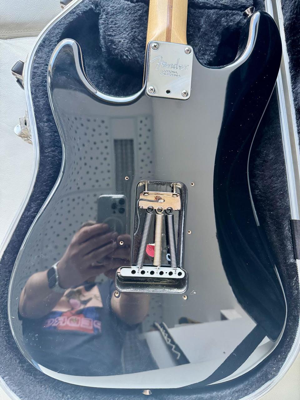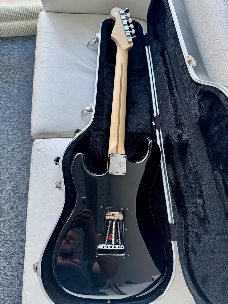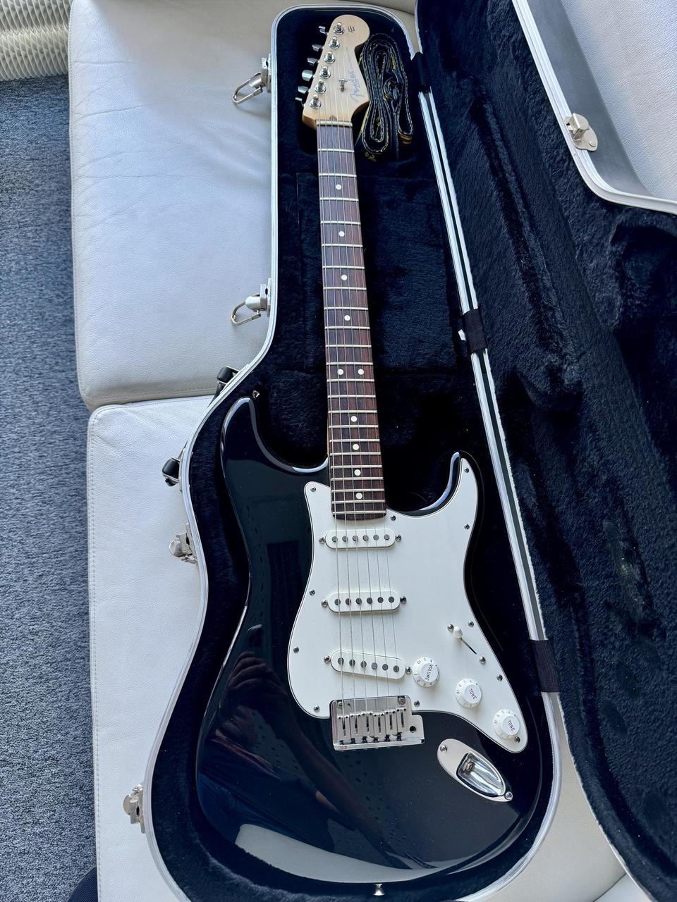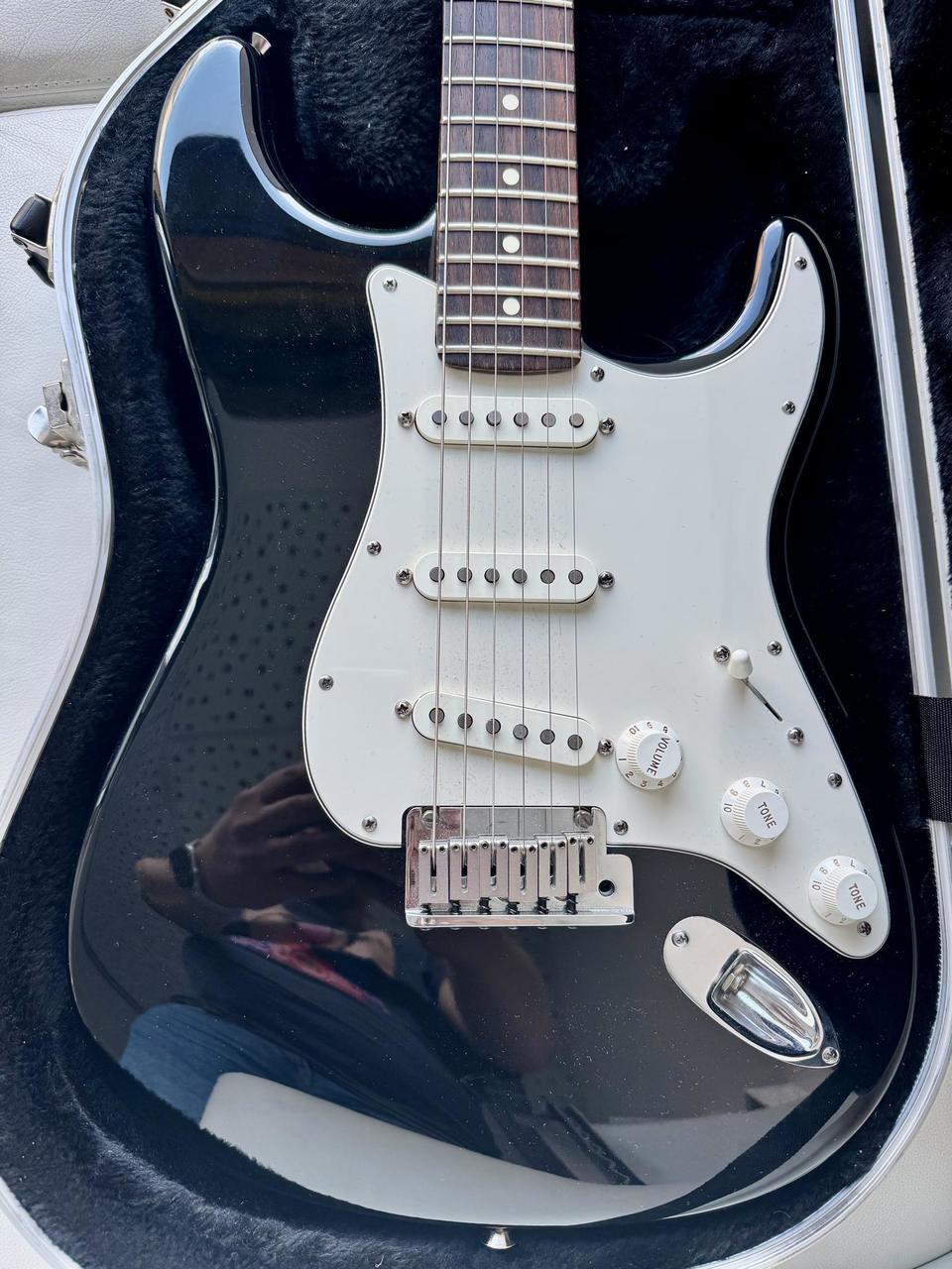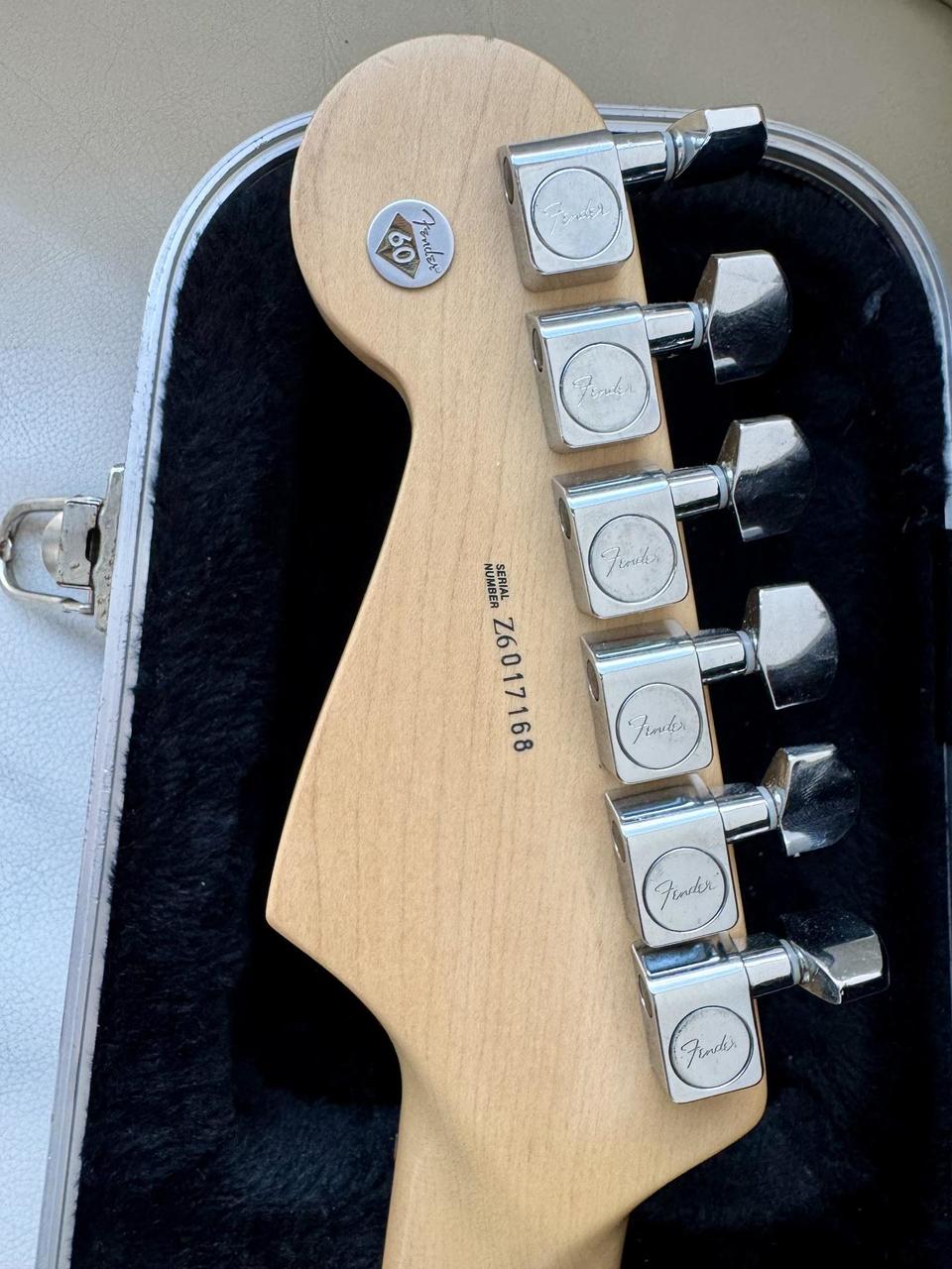 V roce 2006 vyrobila firma Fender jubilejní řadu kytar Stratocaster a tato černá kráska je jednou z nich. Je ve výborném stavu s minimálními stopami po hraní. Zvukově je velmi dynamická a krásně reaguje na styl hry a úroveň zkreslení. Podařilo se mi u ní dochovat prakticky vše, co s ní přišlo z výroby, viz foto. Kytara nebyla nikdy modifikována ani opravována.