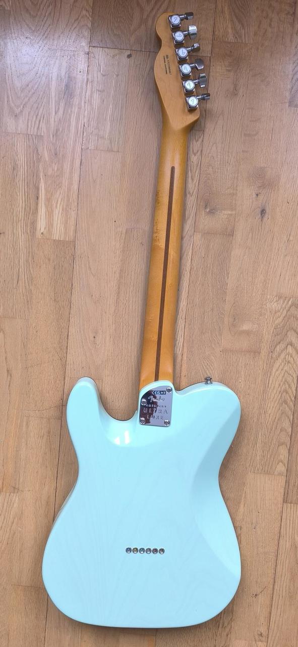 Prodám kytaru Fender American Ultra Luxe Telecaster RW Transparent Surf Green koupenou v srpnu 2024 u Thomann (SRN). Je v perfektním stavu, ne moc hraná. Pickguard je stále chráněn igelitovým samolepem.